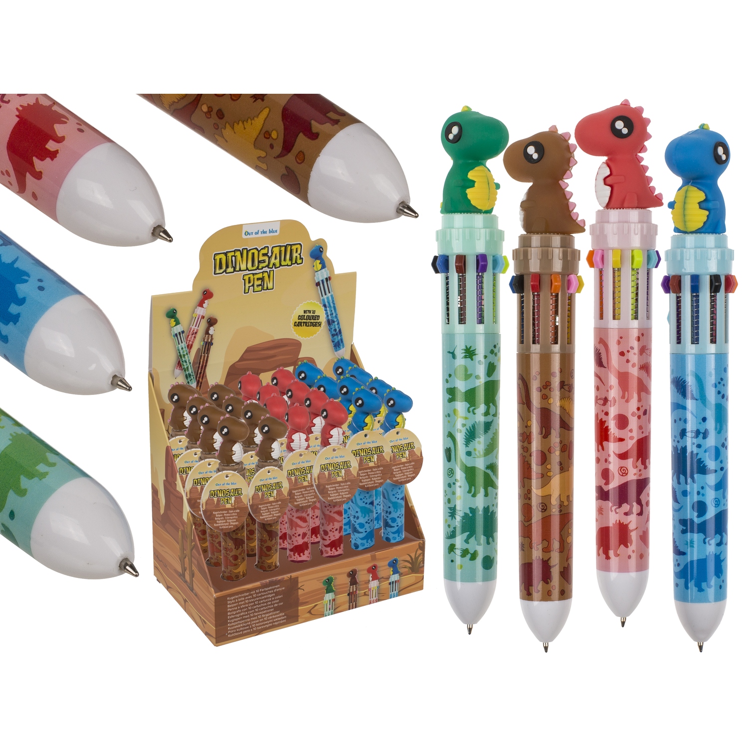 Στυλό δεινόσαυροι με 10 χρωματιστές μύτες πολύχρωμο πλαστικό σε 4 χρώματα.