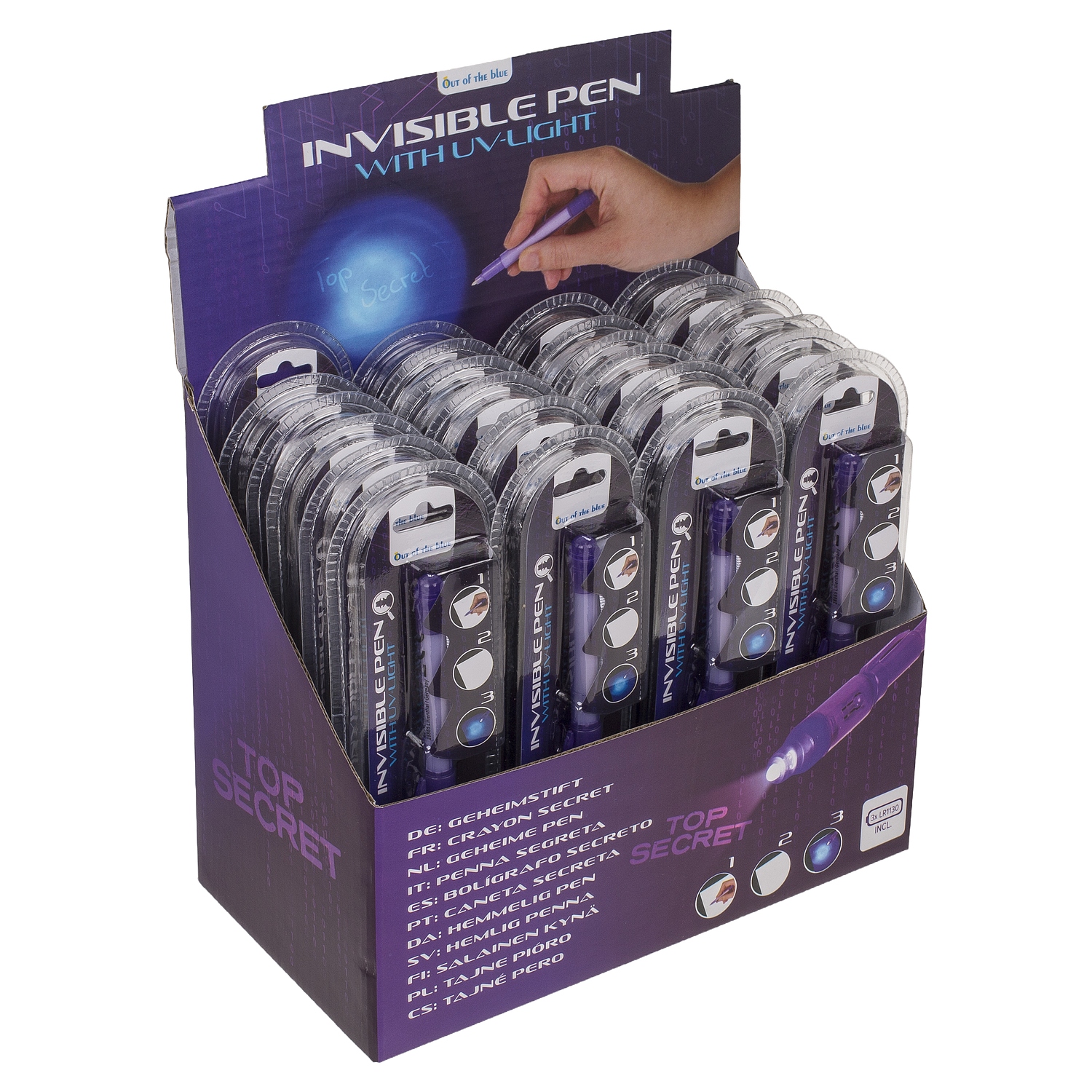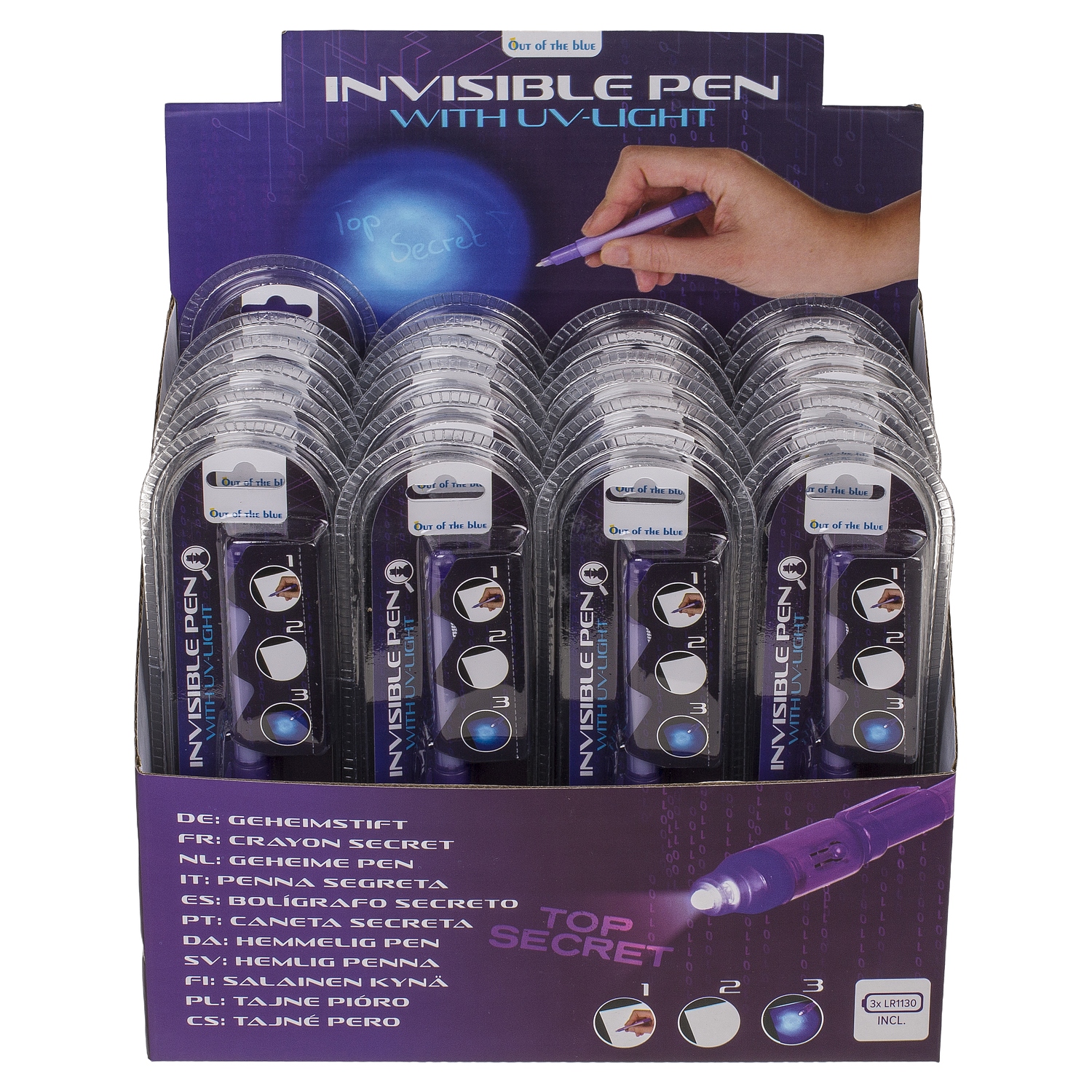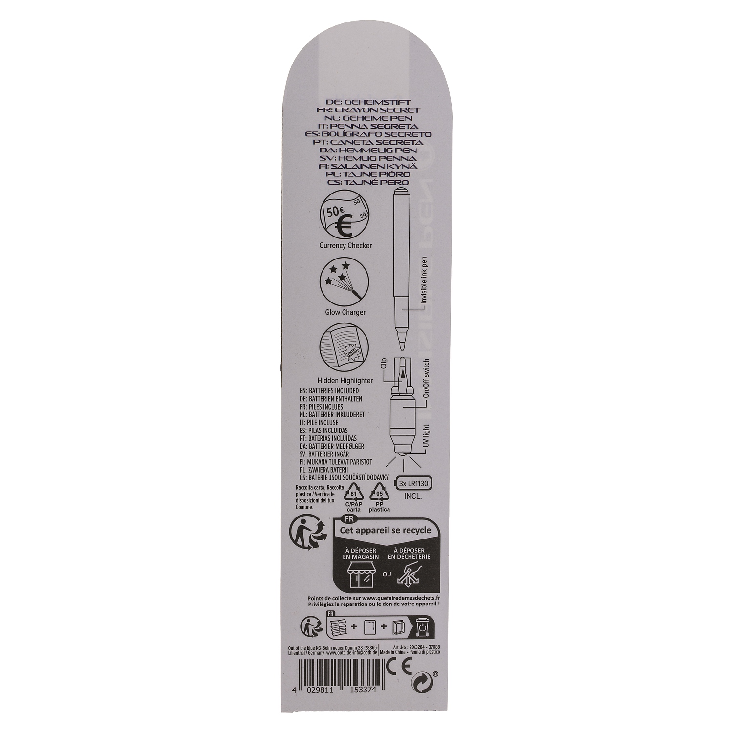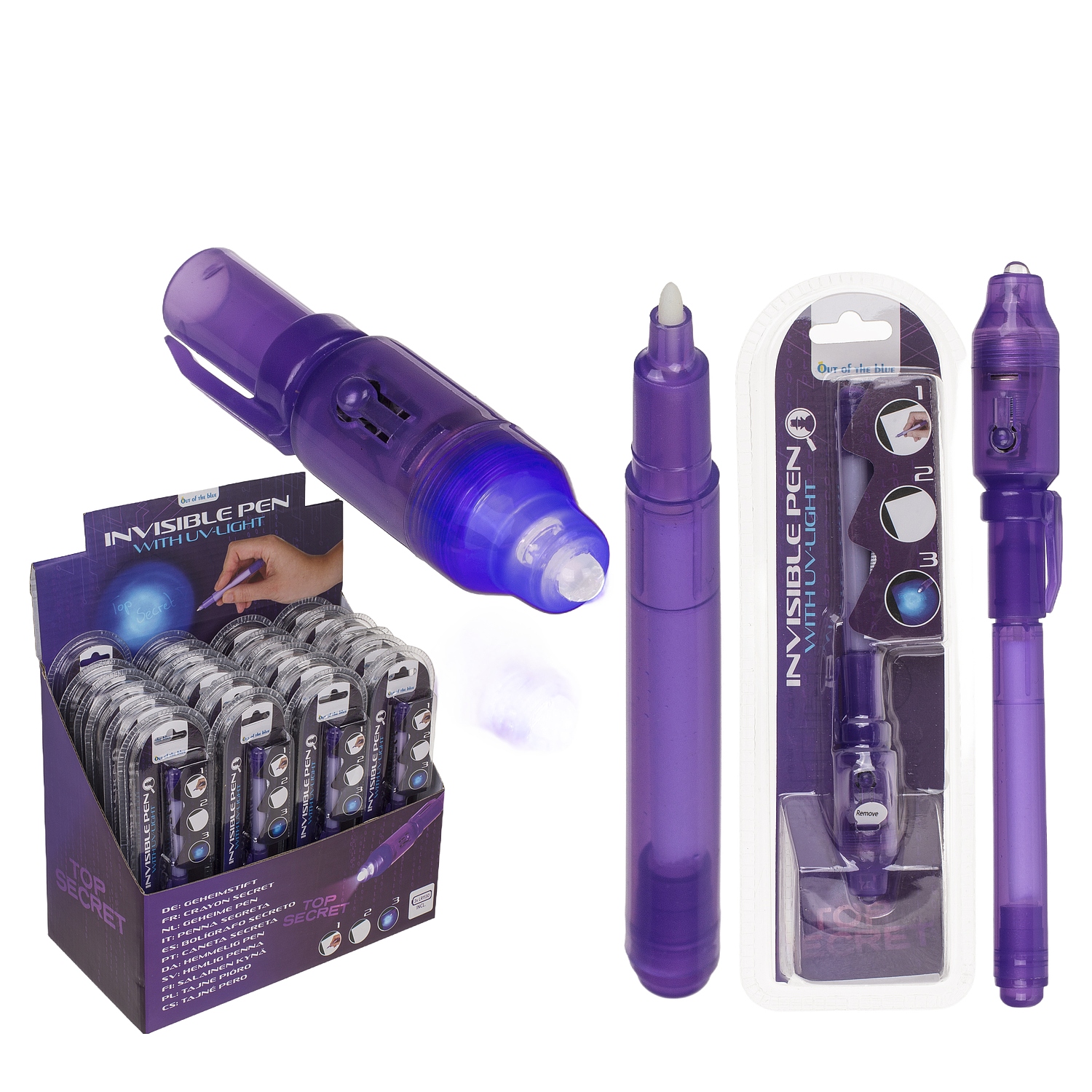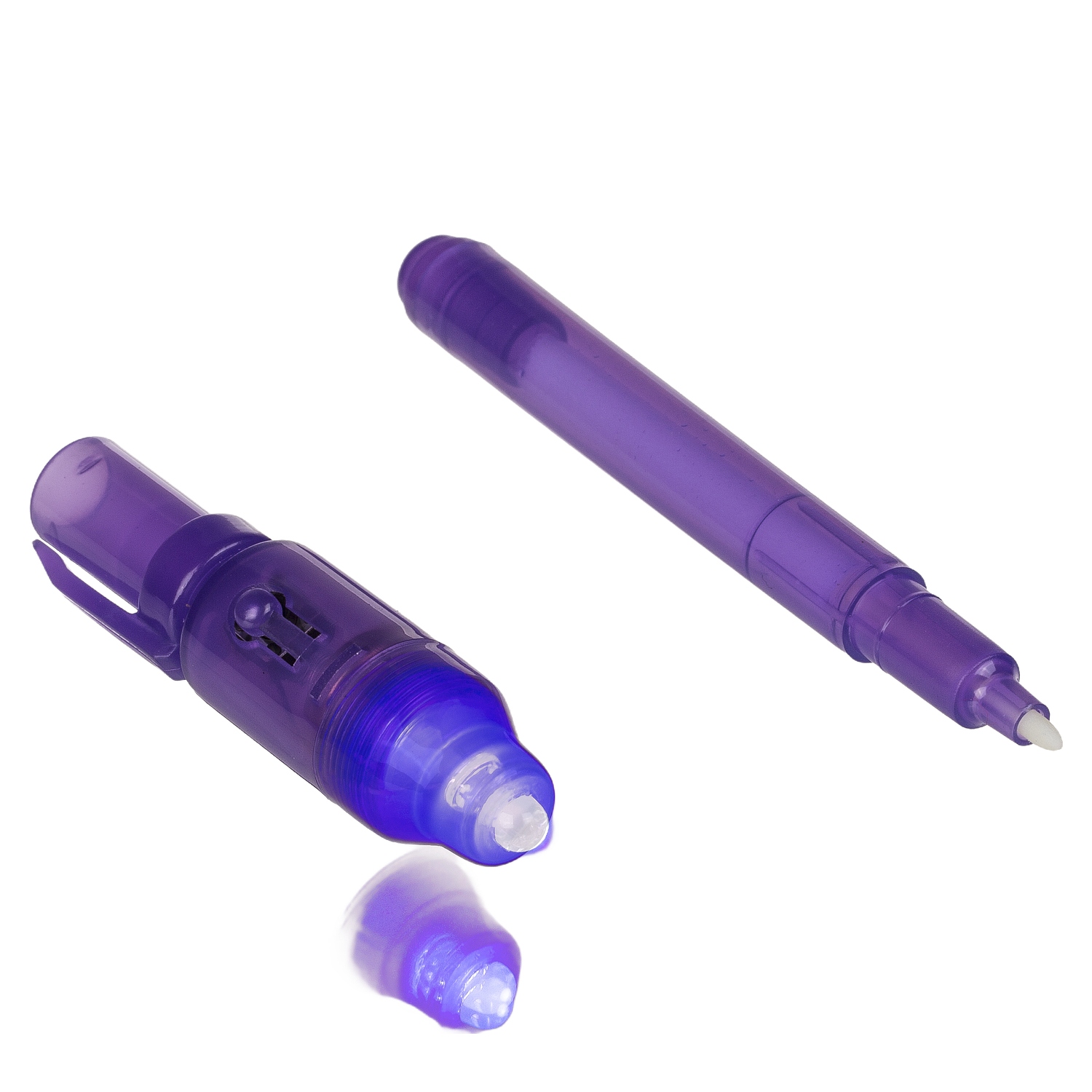Στυλό με αόρατο μελάνι και φακό UV μοβ πλαστικό.