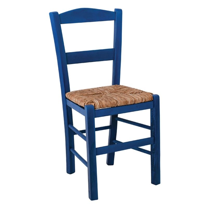 ΣΥΡΟΣ Καρέκλα Οξιά Βαφή Εμποτισμού Ανιλίνη Μπλε, Κάθισμα Ψάθα