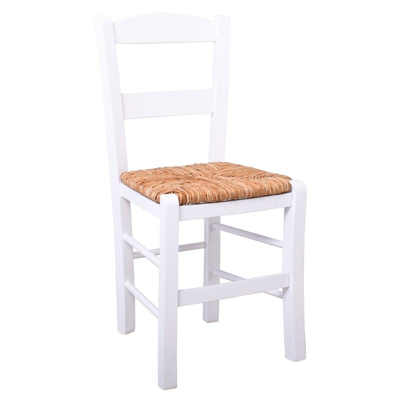 ΣΥΡΟΣ Καρέκλα Οξιά Βαφή Εμποτισμού Λάκα Άσπρο, Κάθισμα Ψάθα