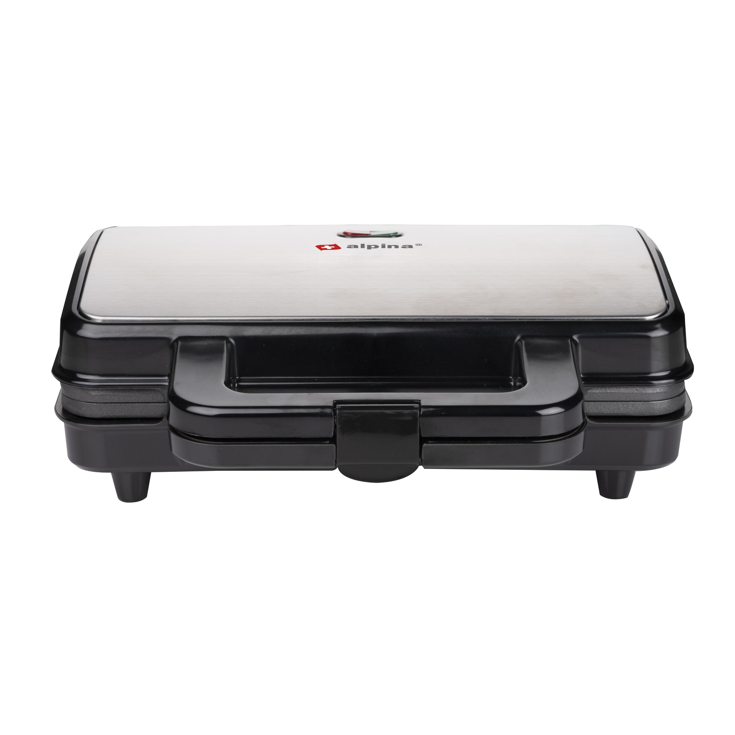 Η συσκευή σάντουιτς XL της ALPINA διαθέτει ισχύ 900W και μπορεί να ψήσει δύο σάντουιτς ταυτόχρονα. Κατασκευασμένη από ανοξείδωτο ατσάλι, προσφέρει ανθεκτικότητα και ομοιόμορφο ψήσιμο με αντικολλητική επιφάνεια.