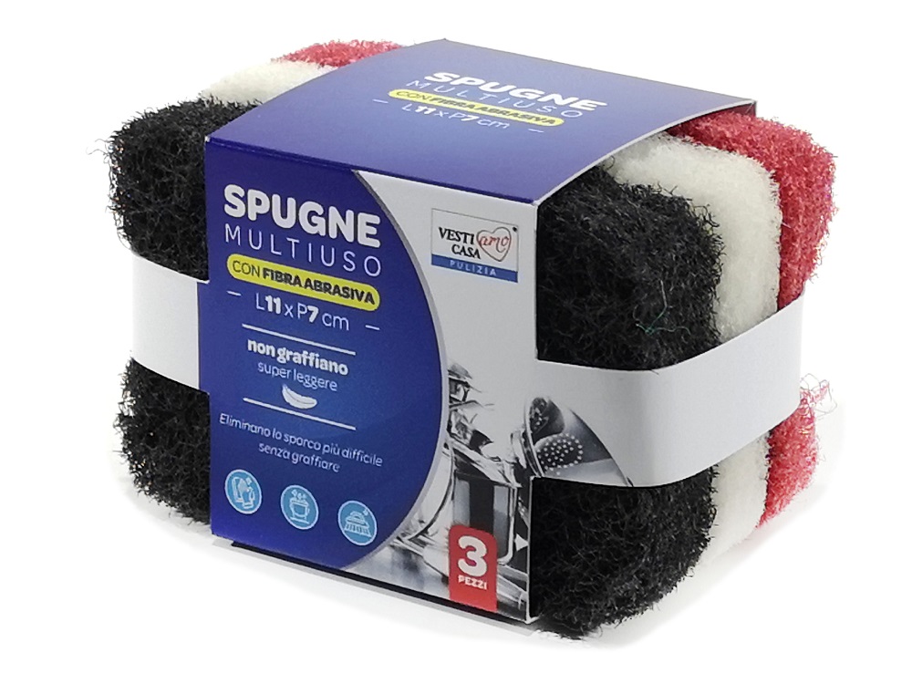 Σφουγγάρι Πολλαπλών Χρήσεων Σε 3 Χρώματα 11x7cm Σετ 3Τμχ