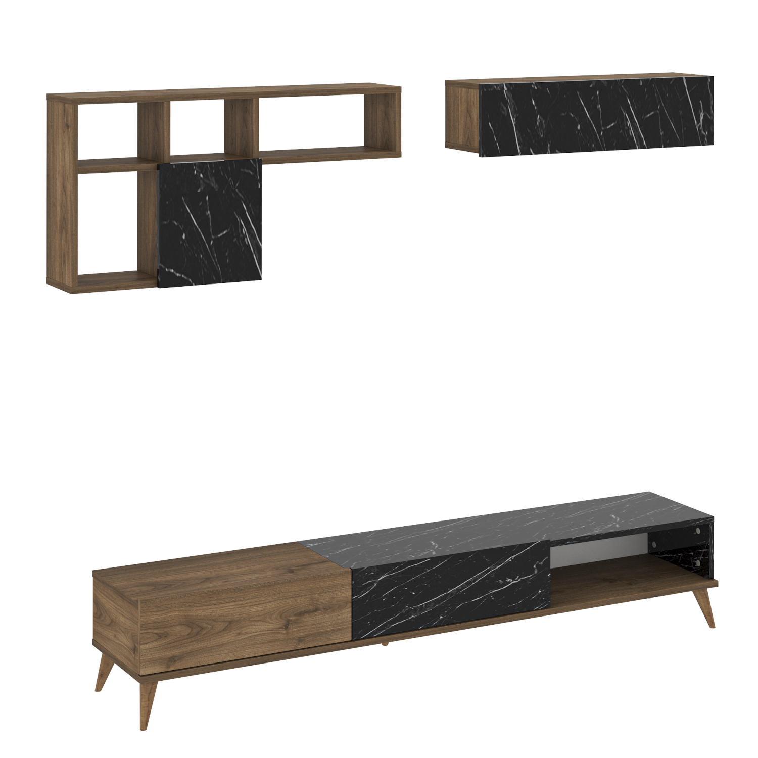 Έπιπλο Τηλεόρασης – Σύνθετο Σαλονιού ISOLDE (Δρυς – Μαύρο Μάρμαρο), 180x33x41cm