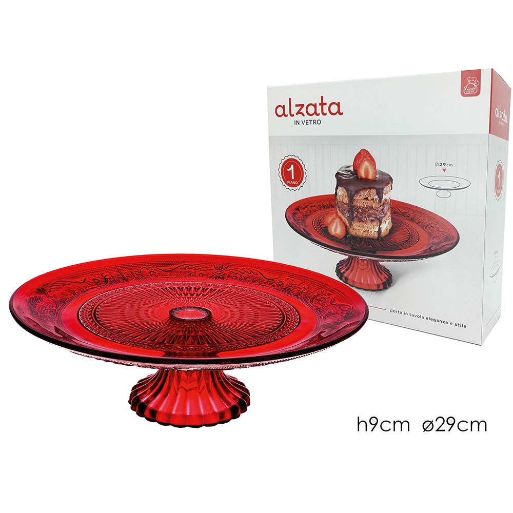 Τουρτιέρα κόκκινο/διάφανο γυαλί Φ29x9cm.
