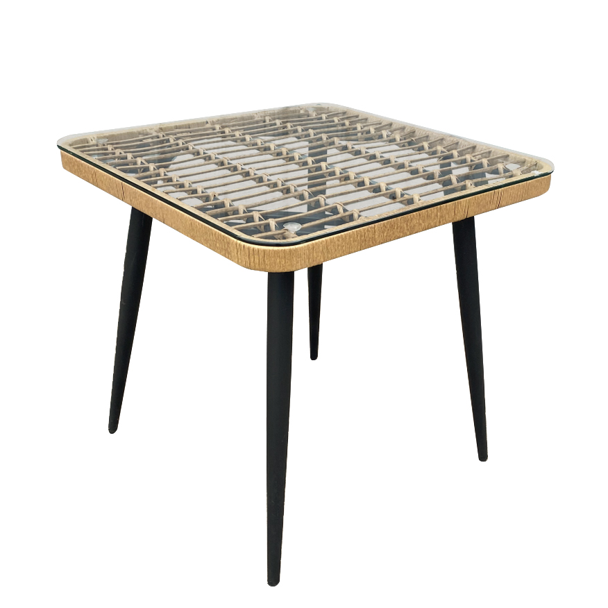 Το τραπέζι κήπου CALI της ArteLibre προσφέρει μια κομψή και πρακτική λύση για τον εξωτερικό σας χώρο. Κατασκευασμένο από μεταλλικό σκελετό και επενδυμένο με PE rattan και wicker σε φυσικό χρώμα, προσφέρει ανθεκτικότητα και στυλ. Η επιφάνεια από γυαλί tempered πάχους 8mm προσθέτει μια σύγχρονη αισθητική και εξασφαλίζει αντοχή στη χρήση. Το τραπέζι αυτό είναι ιδανικό για μικρές συγκεντρώσεις στον κήπο ή τη βεράντα σας, προσφέροντας έναν εξαιρετικό συνδυασμό ποιότητας και αισθητικής.