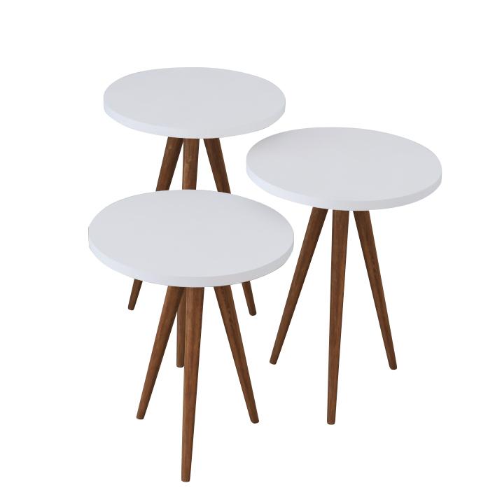 Τραπεζάκι Βοηθητικό ArteLibre BISI Λευκό Μοριοσανίδα/Ξύλο 33.5×52/33.5×47/33.5x42cm Σετ 3Τμχ