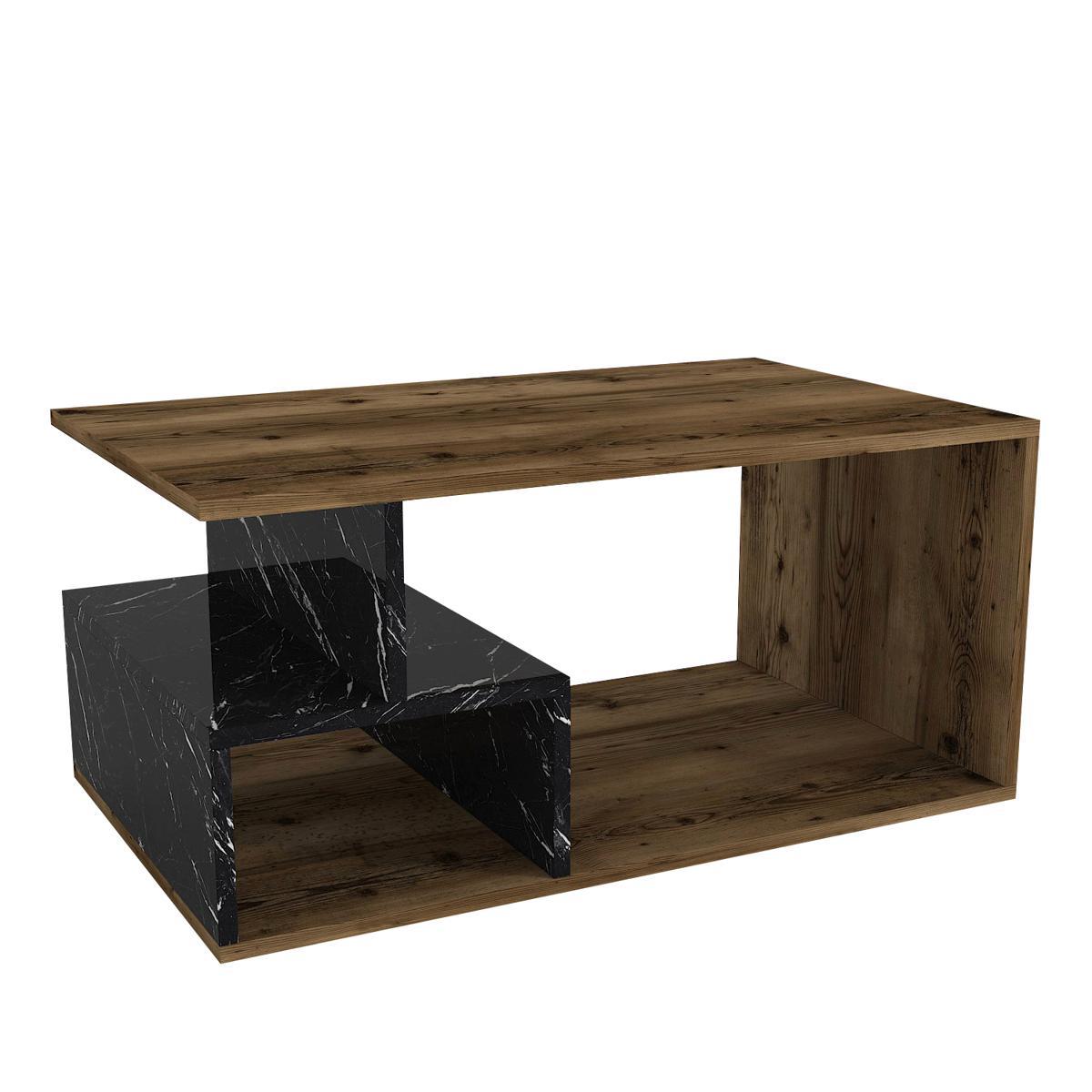 Τραπεζάκι Σαλονιού Drake: Μοντέρνο Design σε Καρυδί & Μαύρο Μάρμαρο (90x54x42cm)