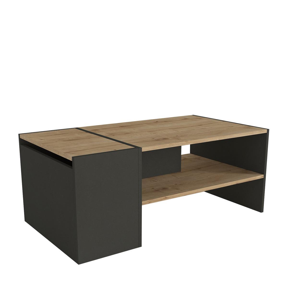 Τραπεζάκι Σαλονιού LEROS σε Φυσικό-Ανθρακί Χρώμα, 110x60x45cm