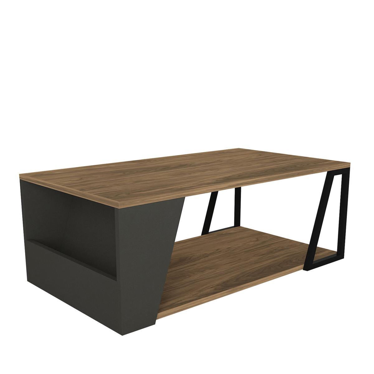 Μοντέρνο Τραπεζάκι Σαλονιού Tinos: Φυσικό Ξύλο & Ανθρακί (100x55x36cm)