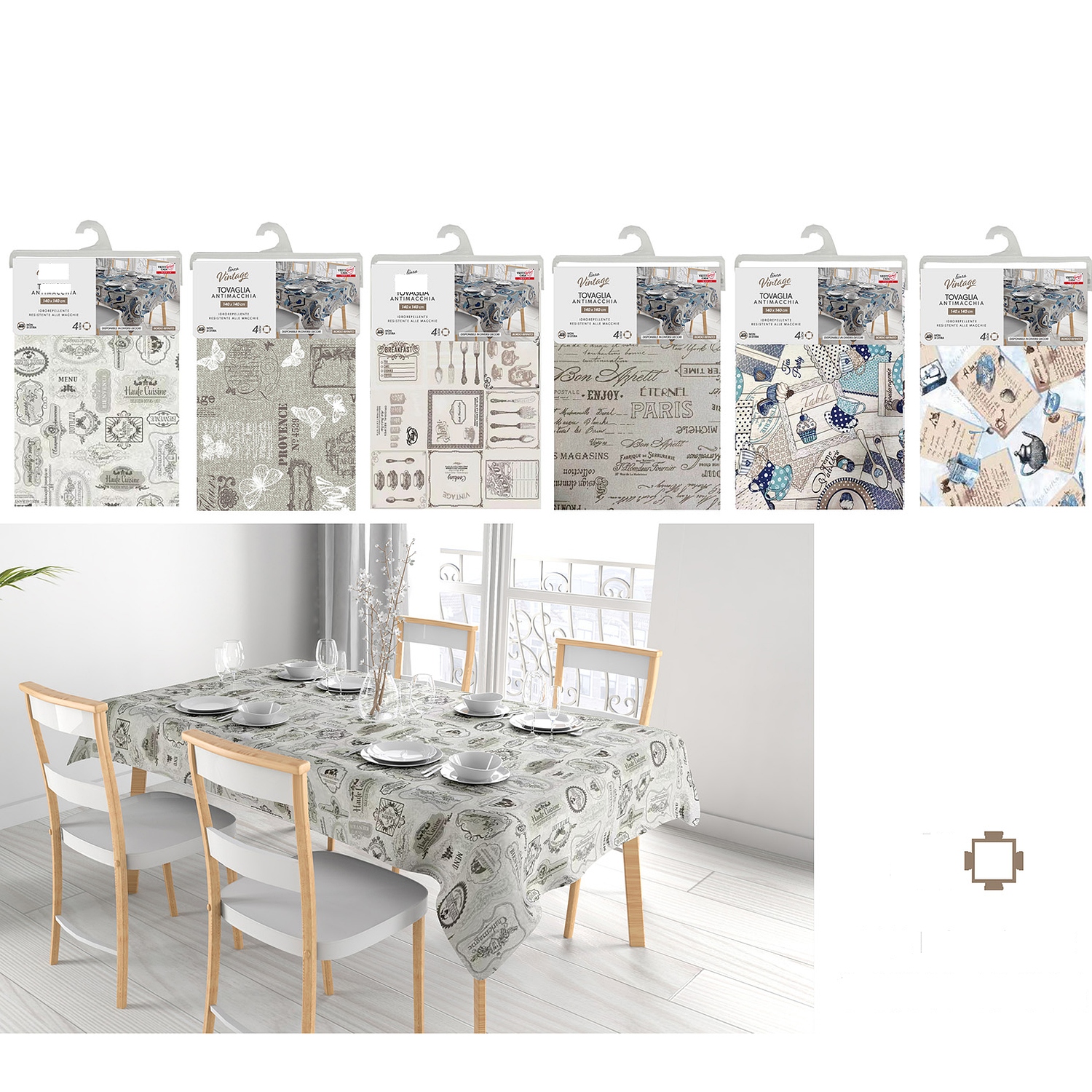 Αντιλεκιαστικό τραπεζομάντηλο από 100% πολυεστέρα με ρετρό σχέδια, ιδανικό για να προστατεύει το τραπέζι σας από λεκέδες και φθορές.
