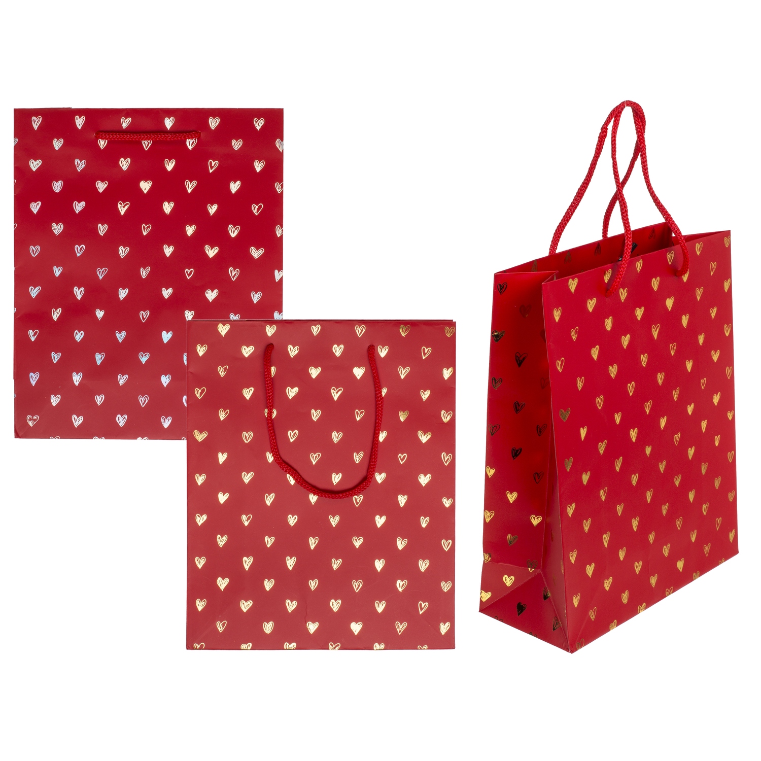 Τσάντα για δώρα με χρυσές καρδιές κόκκινο 18x8x23cm σε 2 αποχρώσεις.