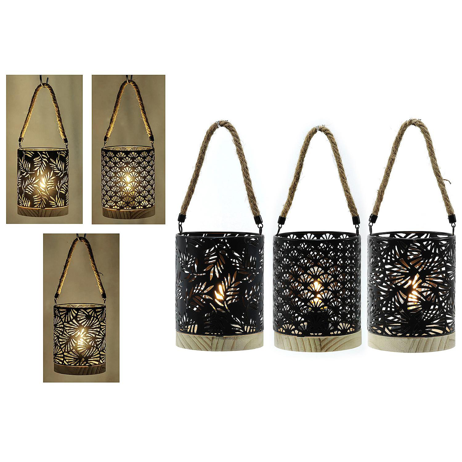 Φανάρι Επιτραπέζιο Με Χερούλι Σχοινιού Μαύρο/Φυσικό Μέταλλο/Ξύλο Φ12x15cm Μπαταρίας Σε 3 Σχέδια
