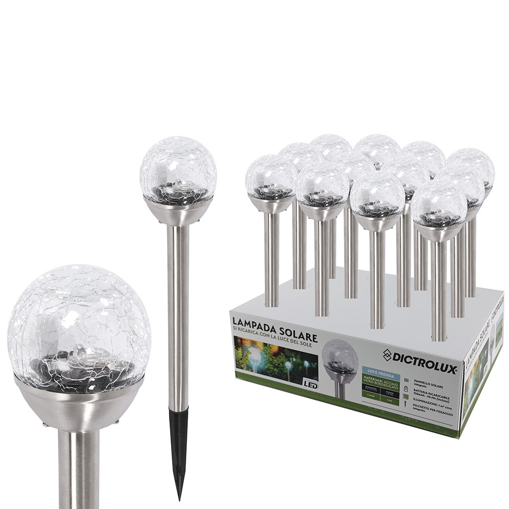 Φανάρι κήπου LED ηλιακό ψυχρό λευκό φως ασημί μέταλλο Φ6x27cm.