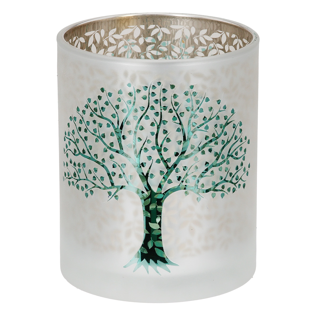 Φανάρι Κυλινδρικό Δέντρο Μοτίφ Γυάλινα Πράσινο Λευκό D10X13Cm D10X13Cm.