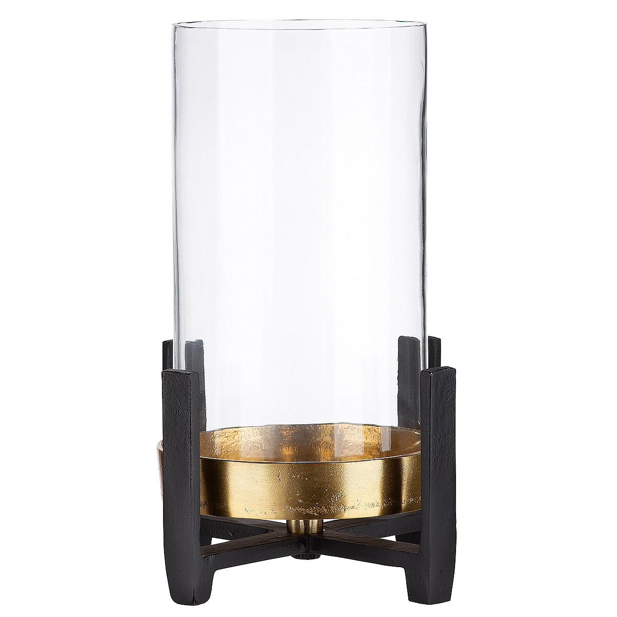 Φανάρι διάφανο/χρυσό γυαλί/αλουμίνιο/ξύλο 18.5x19x27.5cm.