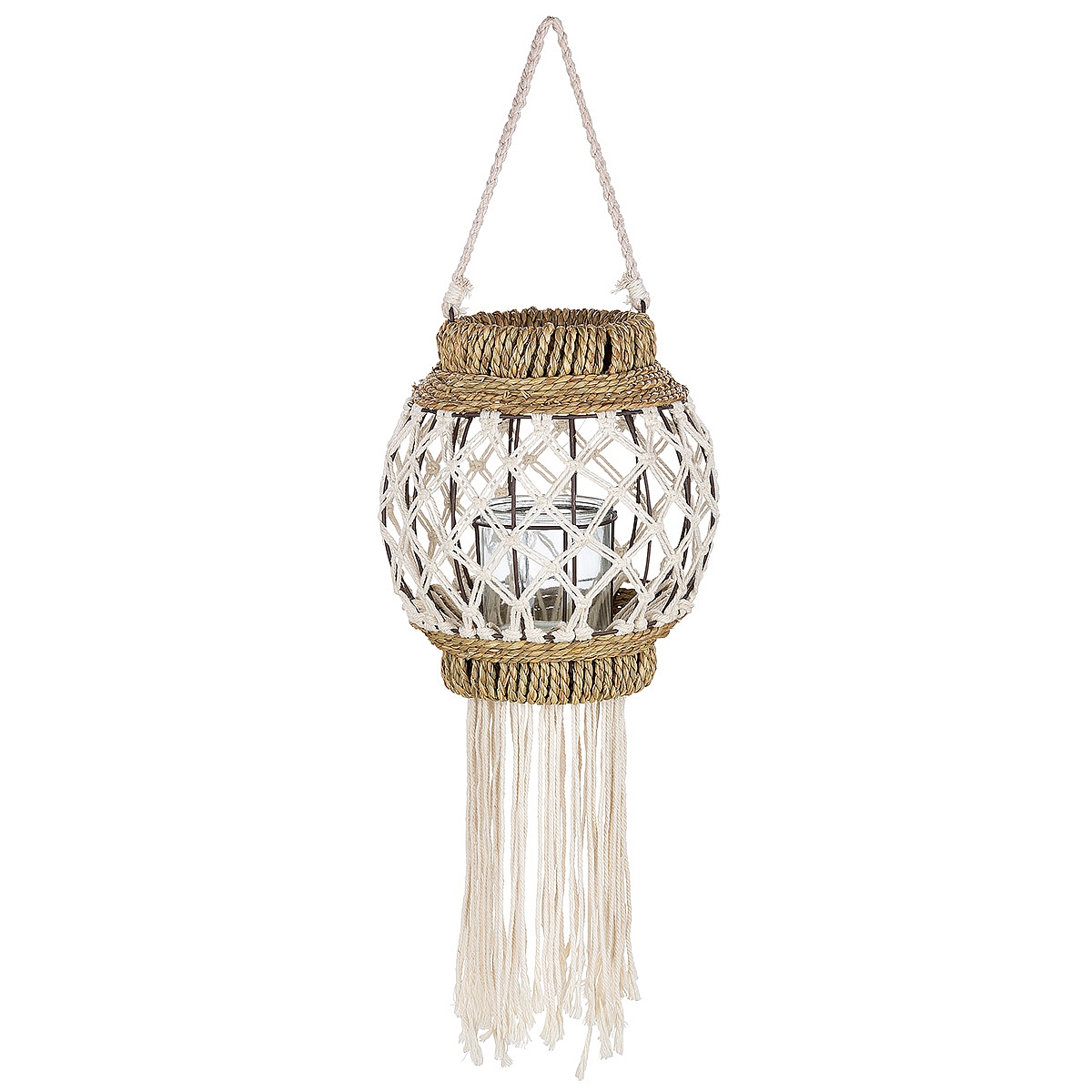 Φανάρι καφέ/λευκό μπαμπού/rattan 29cm.