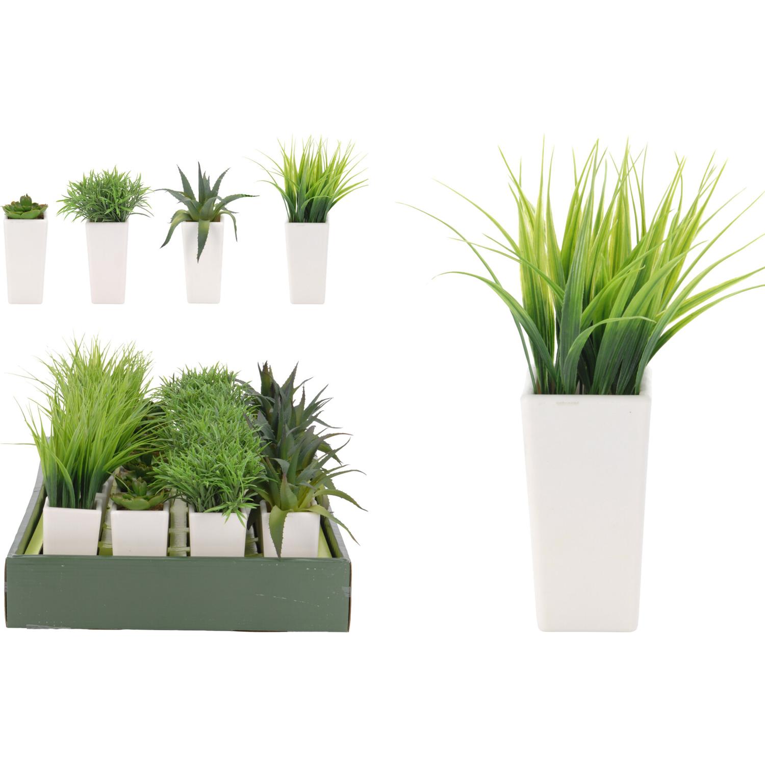 Φυτό τεχνητό σε λευκό γλαστράκι 23cm σε 4 ποικιλίες