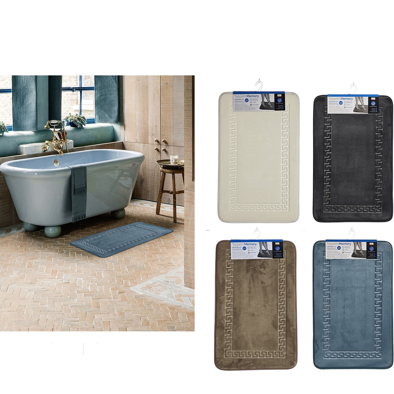 Άνετο χαλί μπάνιου από Memory Foam για απαλή αίσθηση και μοντέρνο σχεδιασμό με ελληνικό μοτίβο. Διατίθεται σε τέσσερα διαφορετικά χρώματα.