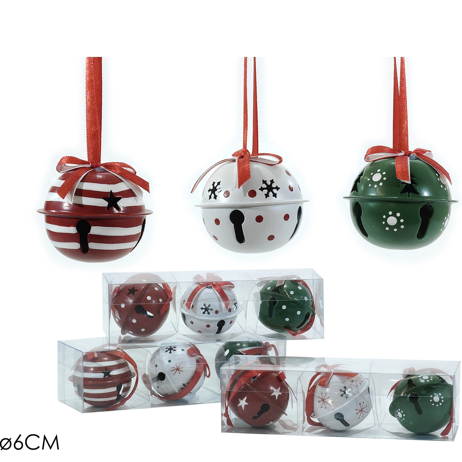 Χριστουγεννιάτικα Κρεμαστά Καμπανάκια 6cm Σετ 3Τμχ Σε 3 Σχέδια