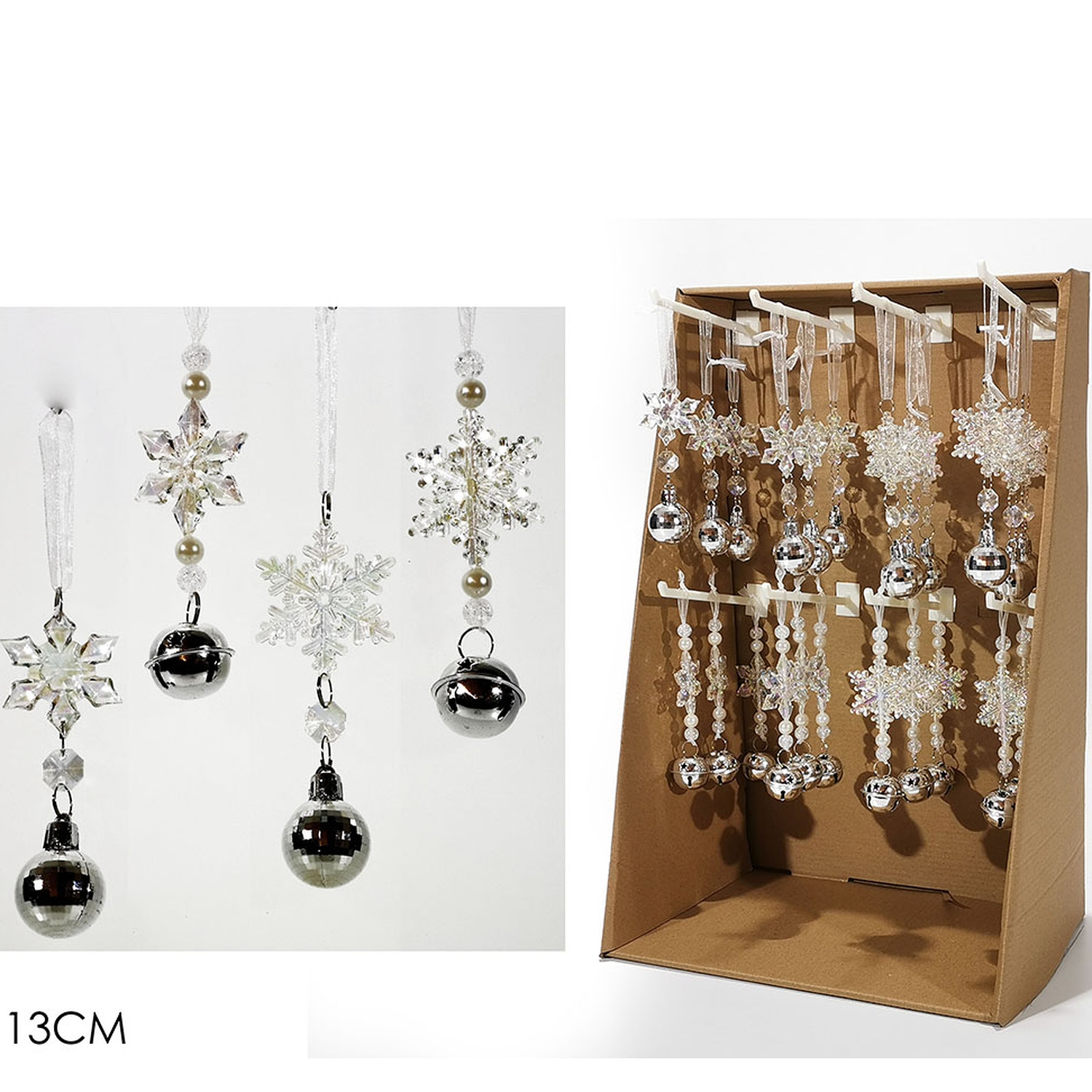 Προσθέστε μια λαμπερή και εκλεπτυσμένη πινελιά στη χριστουγεννιάτικη διακόσμησή σας με αυτά τα κρεμαστά φιόγκους σε ασημί χρώμα. Με ύψος 13cm, αυτά τα κρεμαστά διακοσμητικά περιλαμβάνουν διαφορετικά σχέδια από αστραφτερά χιονονιφάδες και μπάλες που προσθέτουν λάμψη και κομψότητα στο χριστουγεννιάτικο δέντρο ή οποιαδήποτε άλλη γιορτινή διακόσμηση.