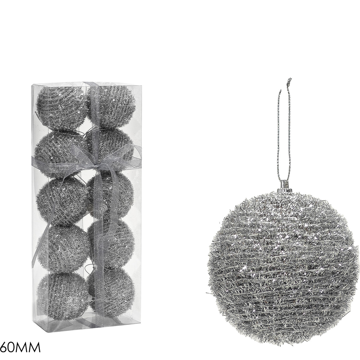 Χριστουγεννιάτικη Μπάλα Ασημί 60mm Σετ 10Τμχ