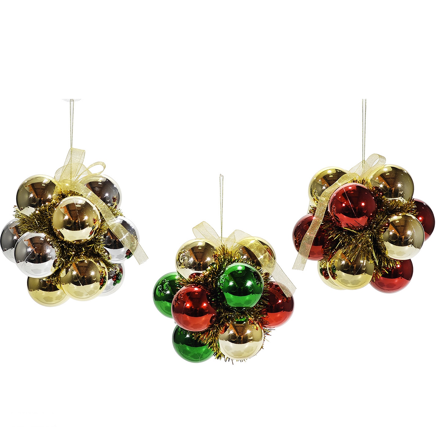 Δώστε μια εντυπωσιακή πινελιά στο χριστουγεννιάτικο δέντρο σας με αυτές τις μεγάλες μπάλες σε κόκκινο, χρυσό και πράσινο. είναι διαθέσιμο σε τρία διαφορετικά σχέδια, που προσφέρουν ποικιλία και στυλ στη διακόσμησή σας. Κάθε μπάλα είναι διακοσμημένη με κορδέλα και γιρλάντα, προσδίδοντας επιπλέον λάμψη και γιορτινή αίσθηση.