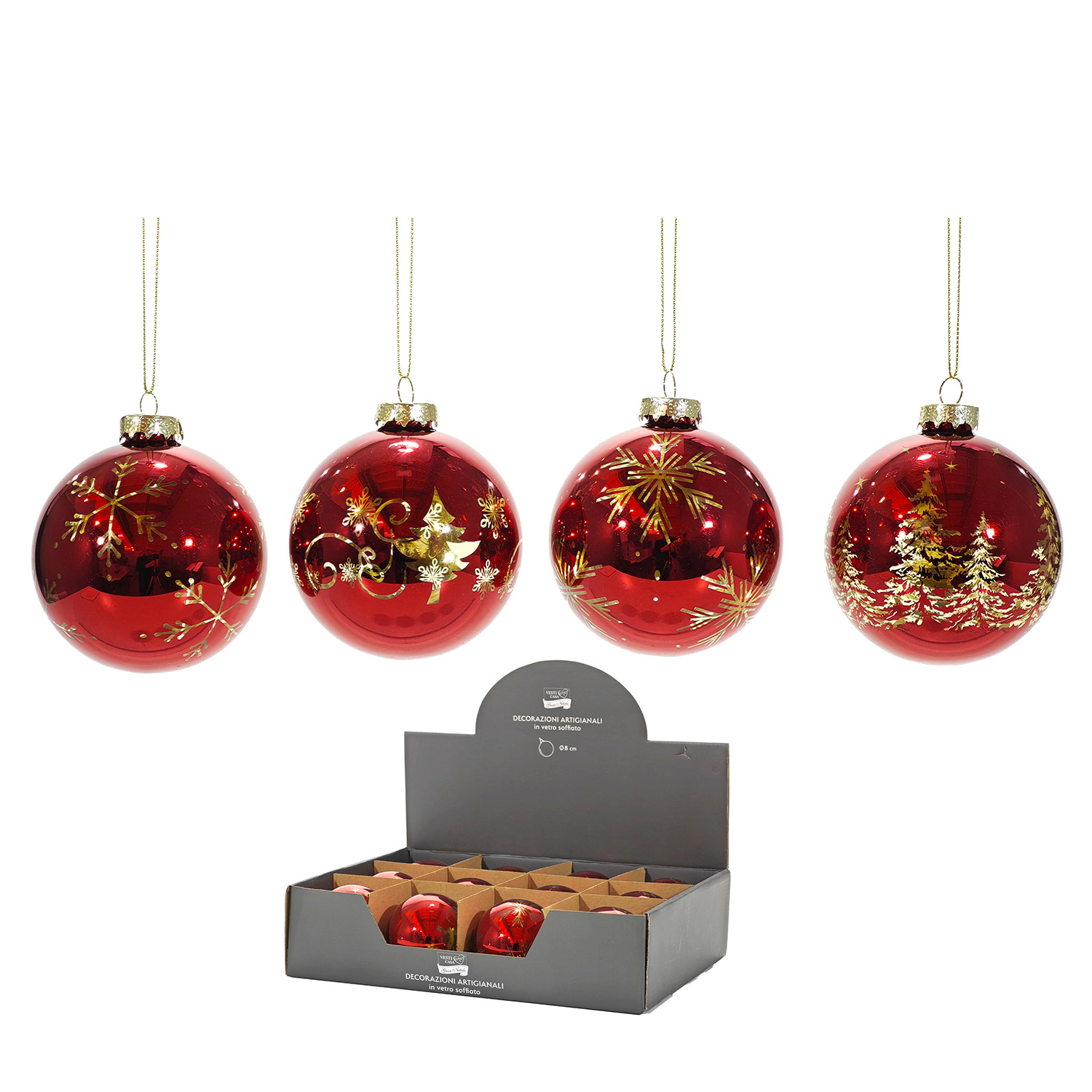 Προσθέστε λάμψη και κομψότητα στο χριστουγεννιάτικο δέντρο σας με αυτές τις μπάλες σε κόκκινο και χρυσό χρώμα. Με διάμετρο 80mm, είναι διαθέσιμο σε τέσσερα διαφορετικά σχέδια, καθένα με μοναδικά χριστουγεννιάτικα μοτίβα που προσφέρουν μια πολυτελή και εορταστική εμφάνιση. Ιδανικές για να προσθέσουν μια λαμπερή και κομψή πινελιά στη διακόσμησή σας.