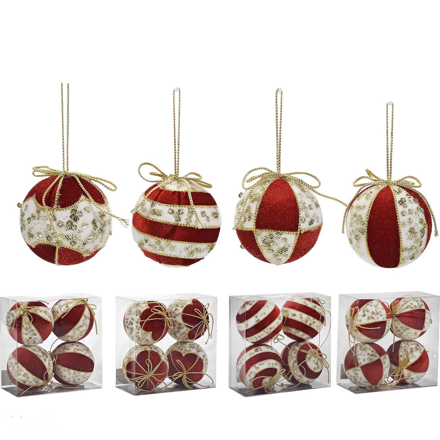 Χριστουγεννιάτικη Μπάλα Κόκκινο 100mm Σετ 4Τμχ Σε 4 Σχέδια