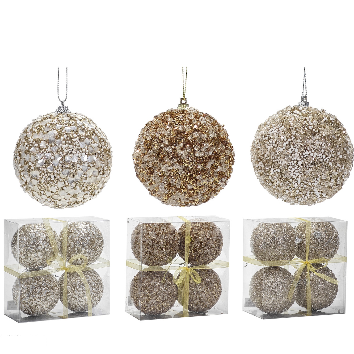 Χριστουγεννιάτικη Μπάλα Ροζ/Χρυσό 100mm Σετ 4Τμχ Σε 3 Σχέδια