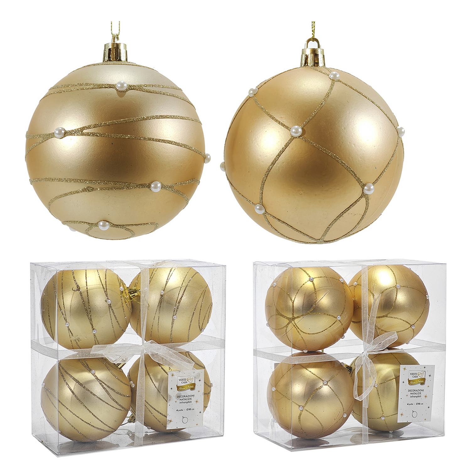 Χριστουγεννιάτικη Μπάλα Χρυσό 100mm Με Πέρλες Σετ 4Τμχ Σε 2 Σχέδια