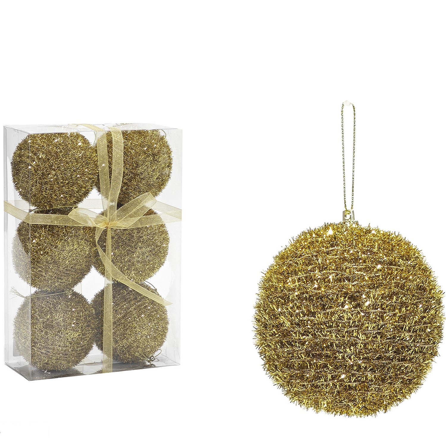 Προσθέστε λάμψη και πολυτέλεια στο χριστουγεννιάτικο δέντρο σας με αυτές τις μπάλες σε χρυσό χρώμα. Με διάμετρο 80mm, είναι διαθέσιμο σε έξι τεμάχια, ιδανικά για να προσθέσουν μια κομψή και γιορτινή ατμόσφαιρα στον χώρο σας. Κατασκευασμένες από υψηλής ποιότητας υλικά, αυτές οι μπάλες προσφέρουν μια εντυπωσιακή και λαμπερή εμφάνιση που θα ενθουσιάσει τους καλεσμένους σας.
