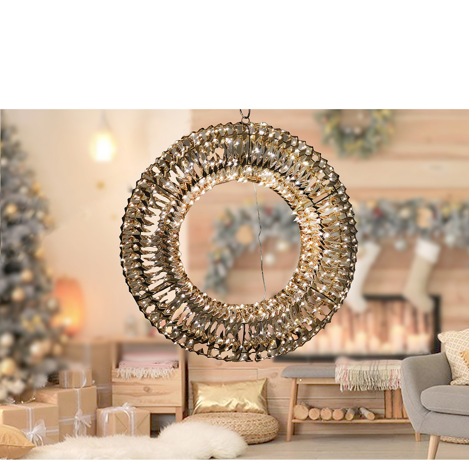 Προσθέστε μια μαγευτική και γιορτινή πινελιά στη διακόσμησή σας με αυτόν τον χριστουγεννιάτικο δακτύλιο διακοσμημένο με 480 MicroLED σε θερμό λευκό. Με διάμετρο 50cm, ο δακτύλιος προσφέρει λάμψη και ζεστασιά στη διακόσμησή σας. Ιδανικός για να κρεμαστεί σε τοίχους, πόρτες ή οποιοδήποτε σημείο του σπιτιού σας που χρειάζεται μια γιορτινή πινελιά.