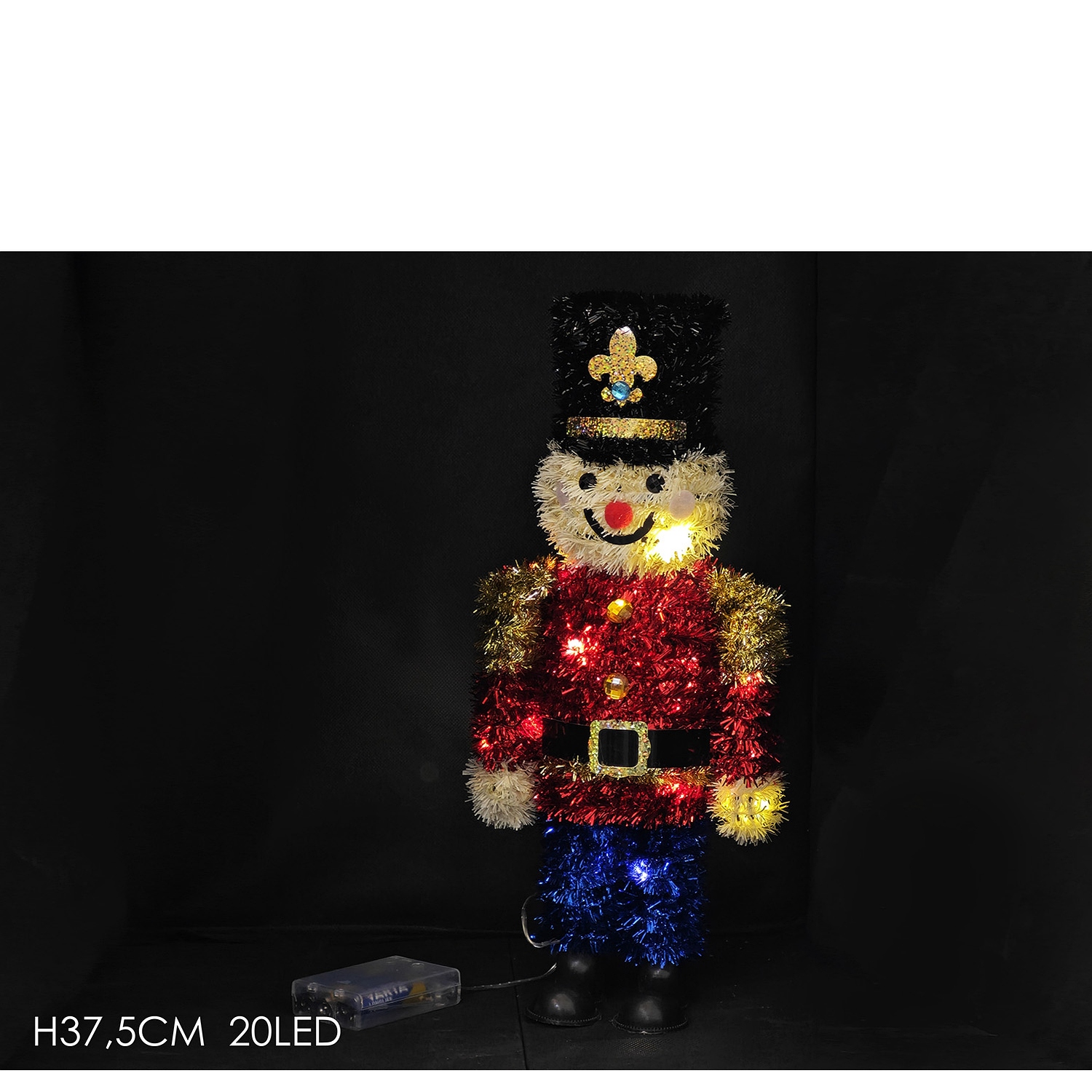 Προσθέστε μια κλασική και φωτεινή πινελιά στη χριστουγεννιάτικη διακόσμησή σας με αυτό το διακοσμητικό στρατιωτάκι. Με ύψος 37.5cm, αυτό το διακοσμητικό διαθέτει 20 LED φωτάκια που προσφέρουν λάμψη και ζωντάνια. Ιδανικό για να τοποθετηθεί σε ράφια, τραπέζια ή οποιοδήποτε σημείο του σπιτιού σας που χρειάζεται μια γιορτινή πινελιά.
