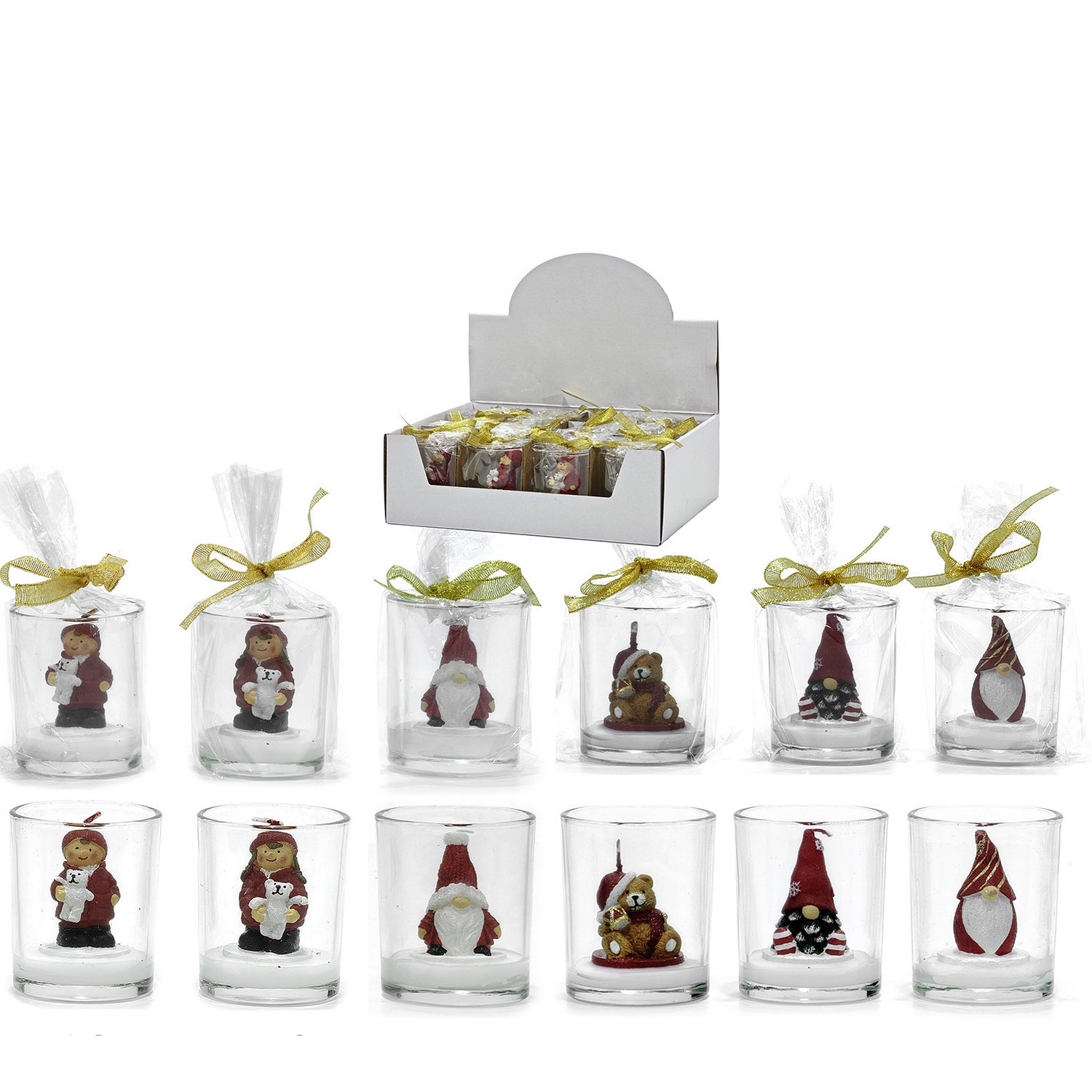 Χριστουγεννιάτικο Κερί Σε Γυάλινο Ποτήρι Με Χαρακτήρες 6cm Σε 6 Σχέδια