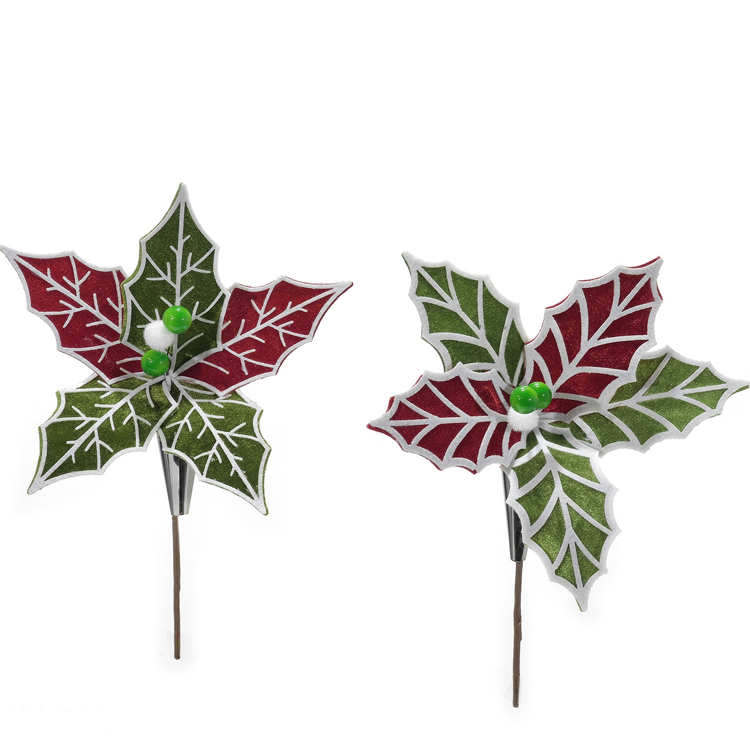 Χριστουγεννιάτικο Κλαδί Με Λουλούδι Κόκκινο/Πράσινο 32cm Σε 2 Σχέδια
