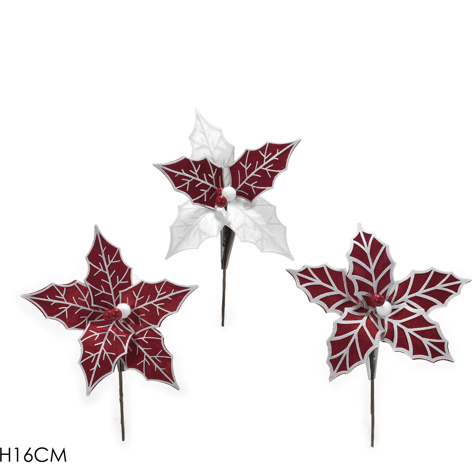 Προσθέστε μια κομψή και γιορτινή πινελιά στη διακόσμησή σας με αυτό το χριστουγεννιάτικο κλαδί με λουλούδι. Με ύψος 16cm και διαθέσιμο σε 3 διαφορετικά σχέδια σε κόκκινο και λευκό, αυτό το κλαδί είναι ιδανικό για να στολίσετε τραπέζια, ράφια ή κονσόλες. Προσφέρει μια ζεστή και γιορτινή αίσθηση στον χώρο σας.