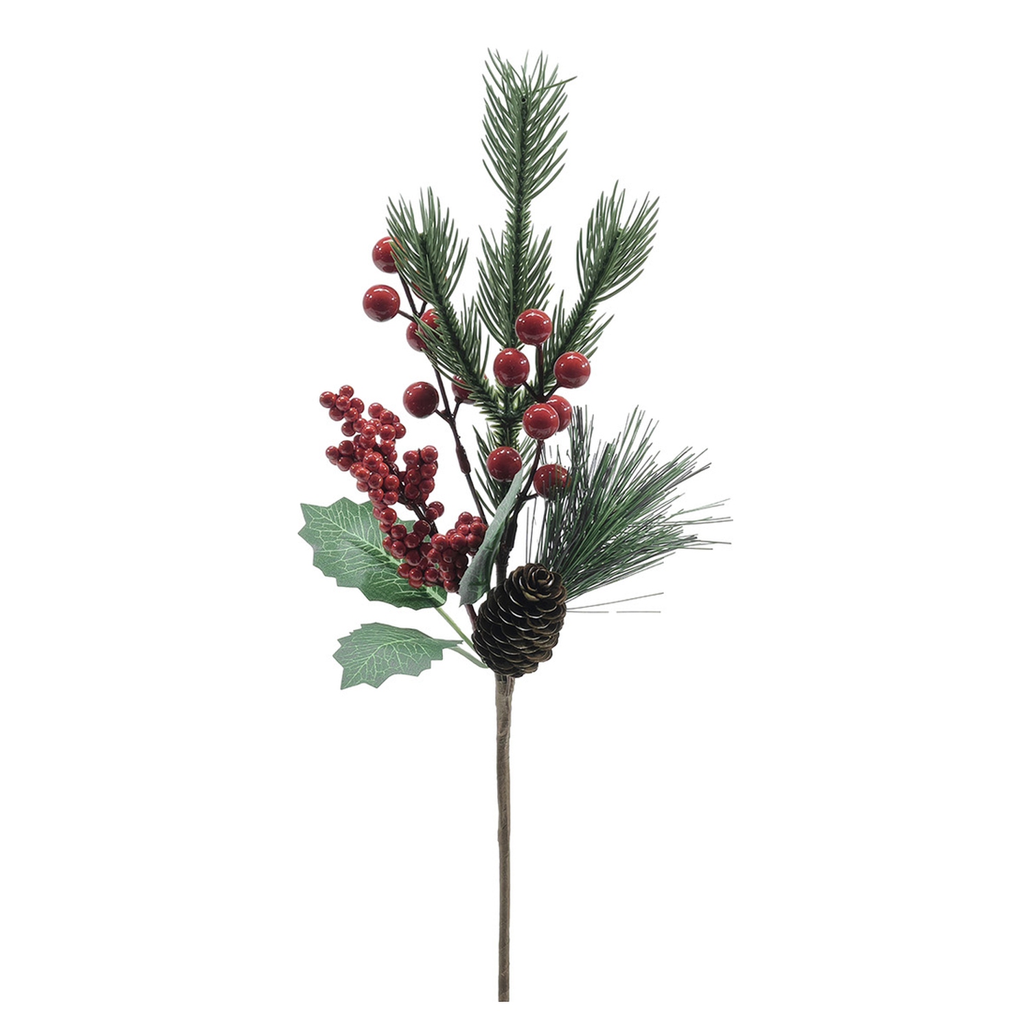 Χριστουγεννιάτικο Κλαδί Με Μούρα Και Κουκουνάρι Κόκκινο 36cm