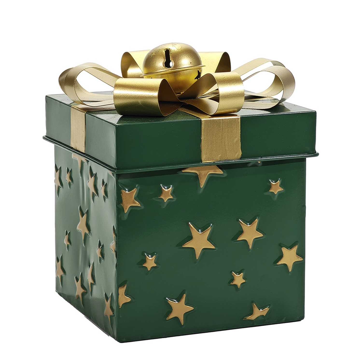 Προσθέστε μια κομψή και γιορτινή πινελιά στη διακόσμησή σας με αυτό το χριστουγεννιάτικο κουτί δώρου. Με ύψος 20cm και πράσινο χρώμα, διακοσμημένο με χρυσά αστέρια, αυτό το κουτί είναι ιδανικό για να τοποθετήσετε μικρά δώρα ή γλυκίσματα. Προσφέρει μια χαρούμενη και εορταστική αίσθηση στον χώρο σας.