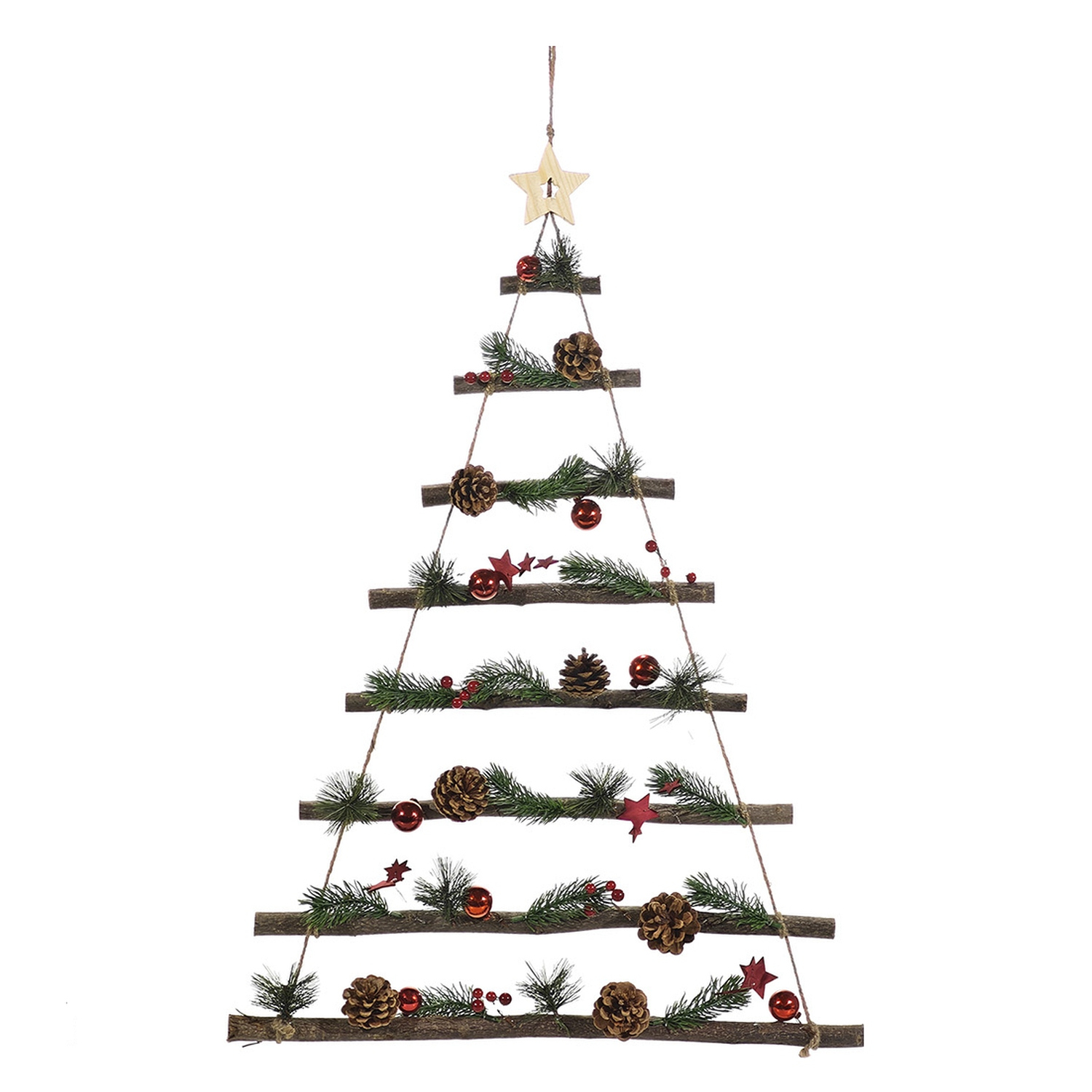 Δώστε μια μαγευτική και γιορτινή πινελιά στη διακόσμησή σας με αυτό το κρεμαστό διακοσμητικό. Με ύψος 80cm και διακοσμημένο με κόκκινες μπάλες και φυσικά στοιχεία, αυτό το διακοσμητικό είναι ιδανικό για να στολίσετε τοίχους ή πόρτες. Προσθέτει μια κομψή και γιορτινή αίσθηση στον χώρο σας.