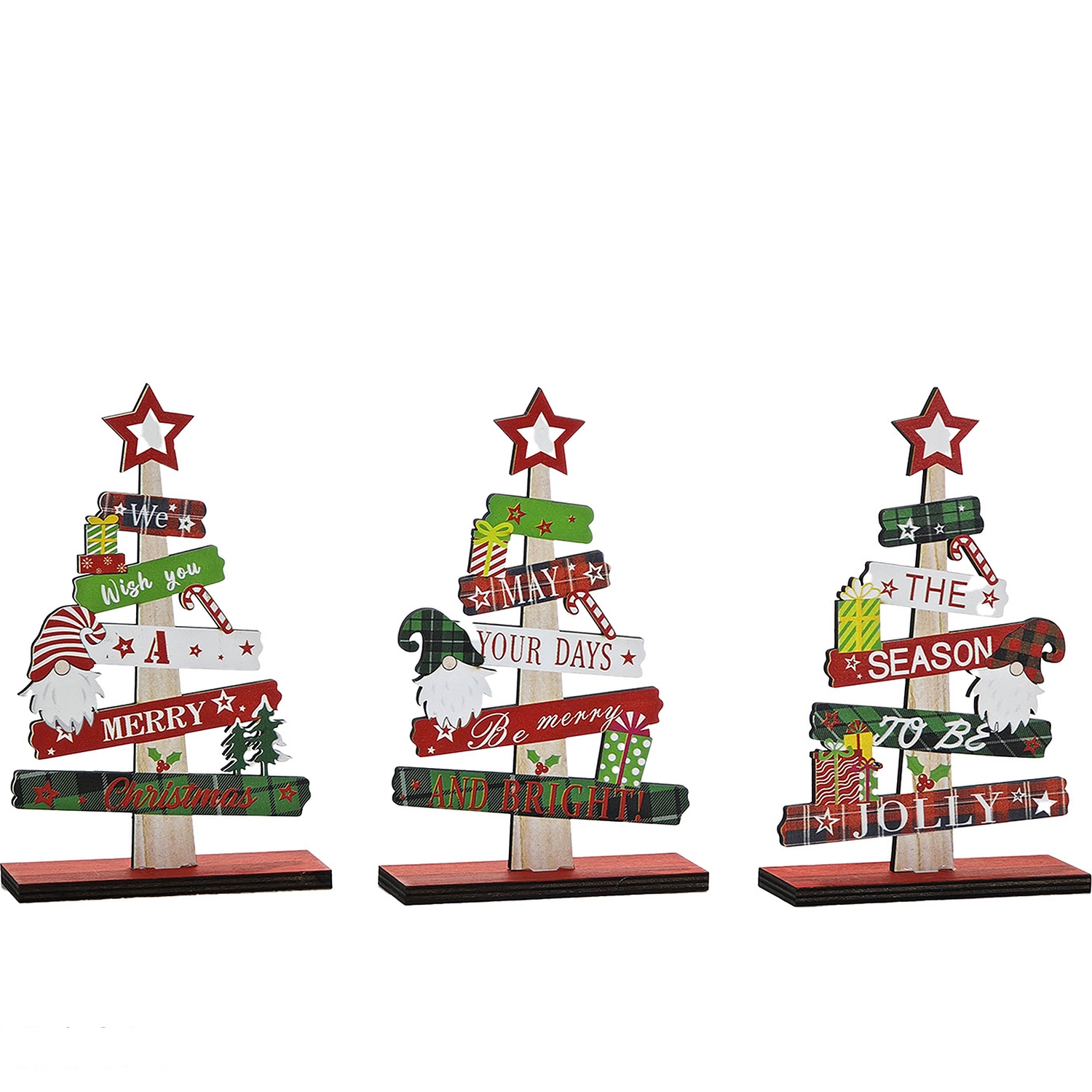 Προσθέστε μια χαρούμενη και πολύχρωμη νότα στη χριστουγεννιάτικη διακόσμησή σας με αυτό το ξύλινο διακοσμητικό δέντρο. Είναι διαθέσιμο σε τρία διαφορετικά σχέδια, καθένα με χαρούμενα μηνύματα και έντονα χρώματα που θα προσφέρουν μια ζωντανή και εορταστική ατμόσφαιρα στο χώρο σας. Ιδανικό για να τοποθετηθεί σε οποιοδήποτε σημείο του σπιτιού σας, αυτό το διακοσμητικό θα ενθουσιάσει μικρούς και μεγάλους.