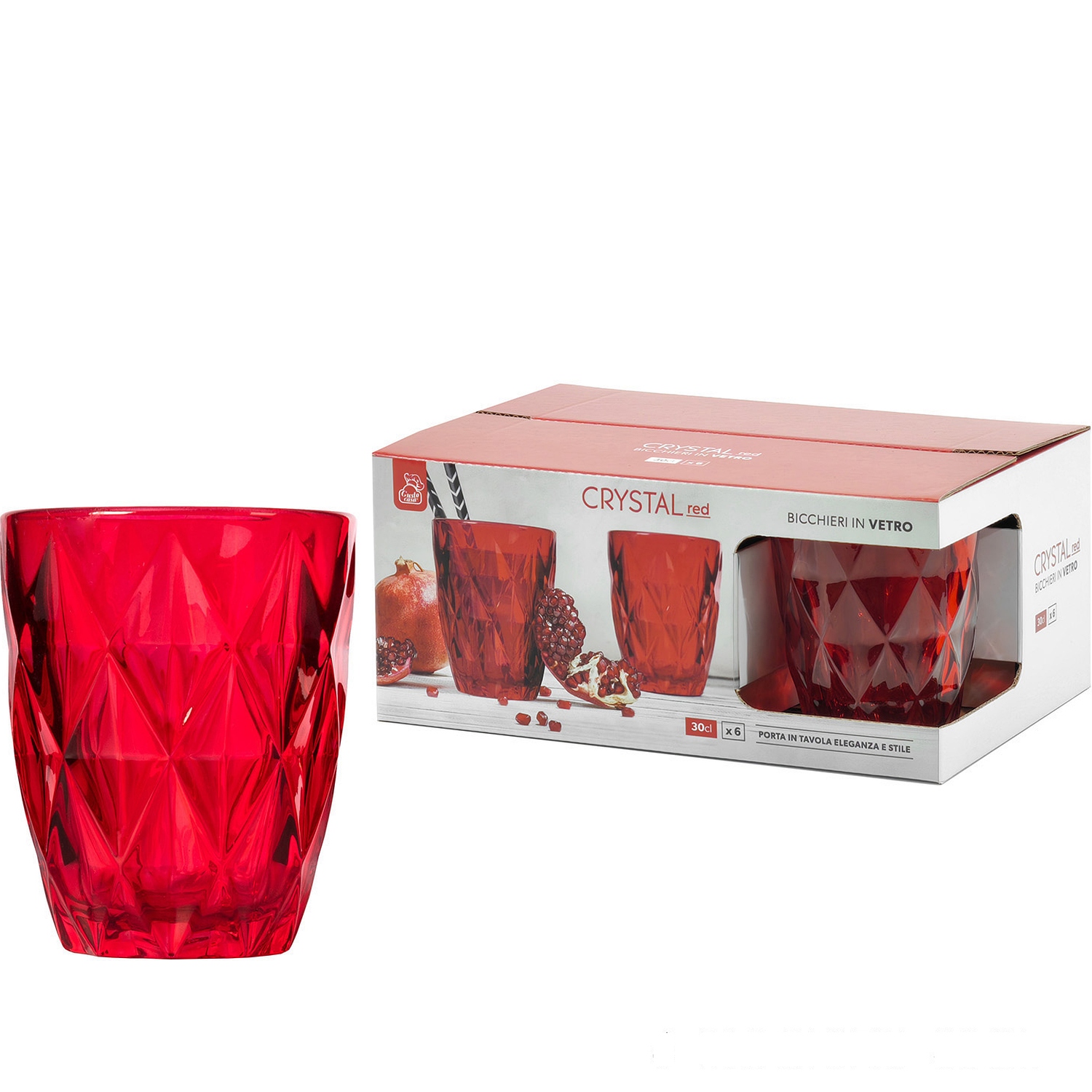 Προσθέστε στυλ και λάμψη στο γιορτινό σας τραπέζι με αυτό το σετ από 6 ποτήρια. Με χωρητικότητα 30cl και κομψό κόκκινο χρώμα, αυτά τα ποτήρια είναι ιδανικά για να σερβίρετε τα αγαπημένα σας ροφήματα. Το λαμπερό τους σχέδιο προσθέτει μια γιορτινή αίσθηση σε κάθε περίσταση.