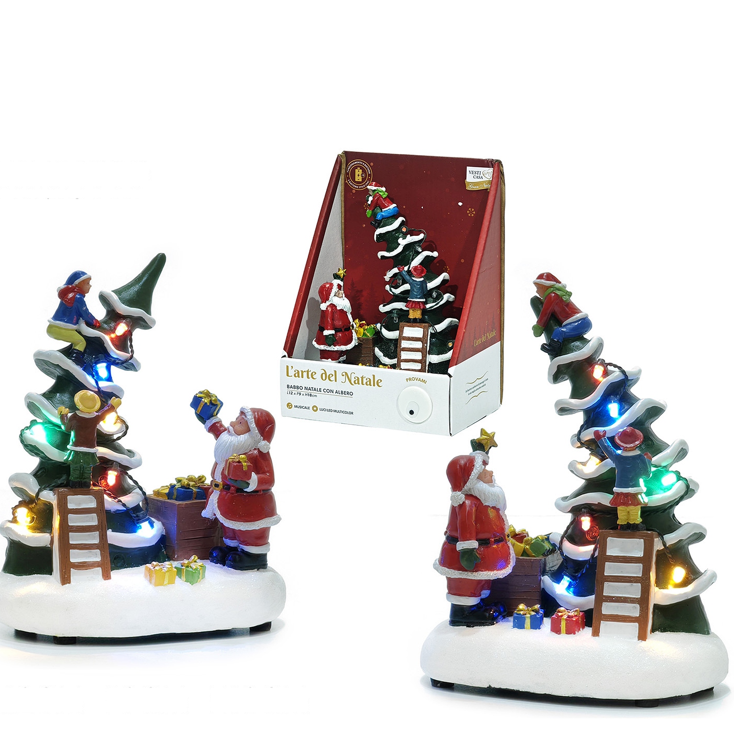 Φέρτε τη μαγεία των Χριστουγέννων στο σπίτι σας με αυτό το σκηνικό που απεικονίζει τον Άγιο Βασίλη με ένα χριστουγεννιάτικο δέντρο. Με διαστάσεις 12x9x18cm, αυτό το σκηνικό διαθέτει φως και μουσική, δημιουργώντας μια ζεστή και γιορτινή ατμόσφαιρα. Ιδανικό για κάθε γωνιά του σπιτιού σας.