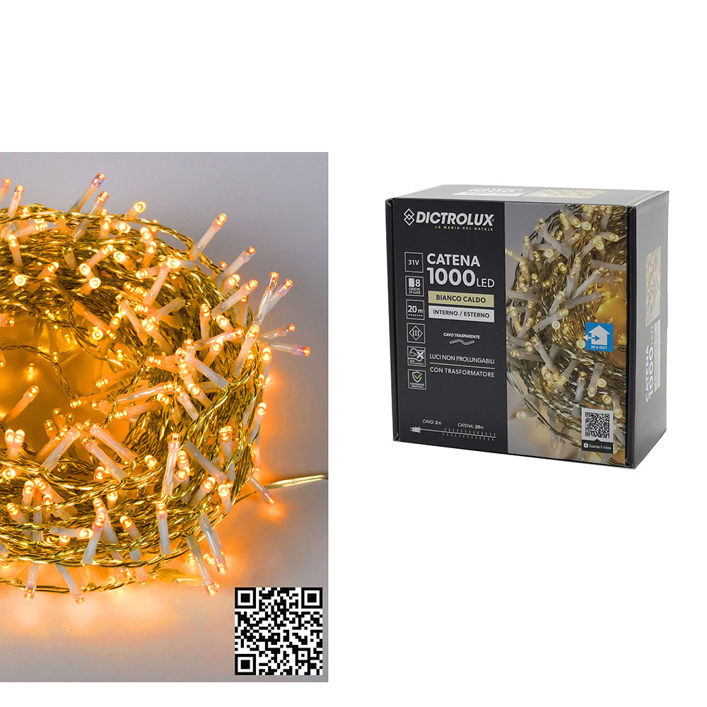 Δώστε ζεστασιά και φως στη χριστουγεννιάτικη διακόσμηση σας με αυτή τη γιρλάντα 1000 LED. Το θερμό λευκό φως και το διαφανές καλώδιο εξασφαλίζουν μια κομψή και διαχρονική εμφάνιση. Με μήκος 20 μέτρα και πρόγραμμα, είναι ιδανική για φωτεινές και εορταστικές στιγμές στο σπίτι ή στον κήπο.