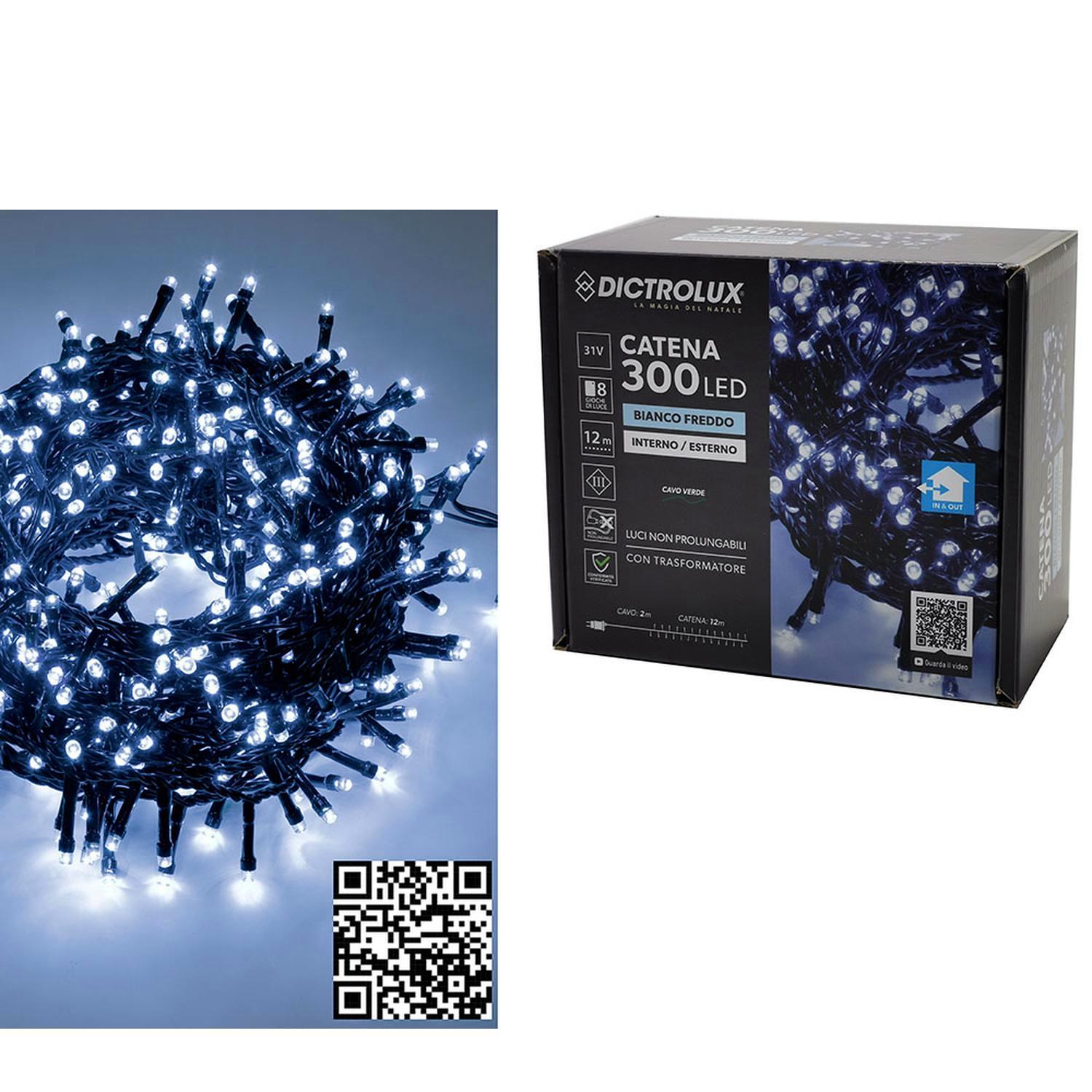 300 LED εσωτ. & εξωτ. χώρου με 8 προγράμματα και μετασχηματιστή ψυχρό λευκό φως πράσινο καλώδιο μη επεκτεινόμενο ip44 31v 14m.