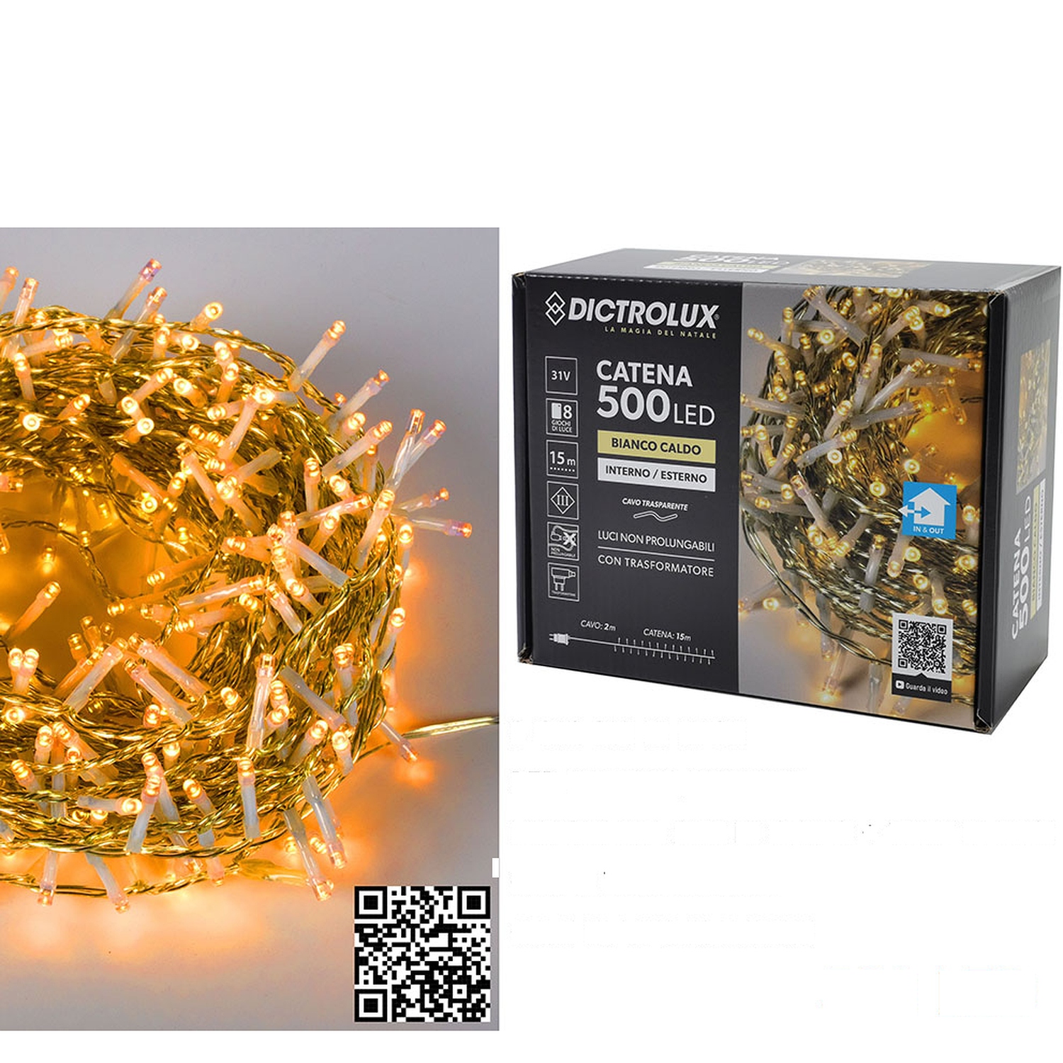 Χριστουγεννιάτικα Λαμπάκια 500 LED Θερμό Λευκό Για Εξωτερικό Χώρο Με Διαφανές Καλώδιο Και Πρόγραμμα