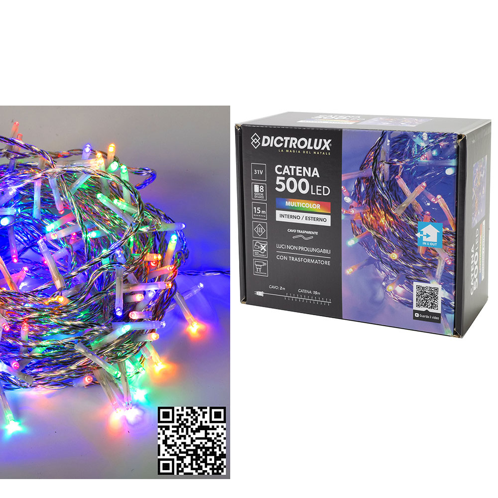 500 LED Πολύχρωμο Για Εξωτερικό Χώρο Με Διαφανές Καλώδιο Και Πρόγραμμα