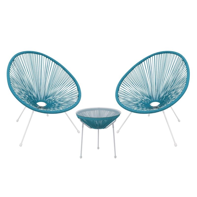 Ε245,Α3S ACAPULCO Set (Τραπ+2 Πολ) Μετ.Άσπρο, Plastic Rattan Μπλε