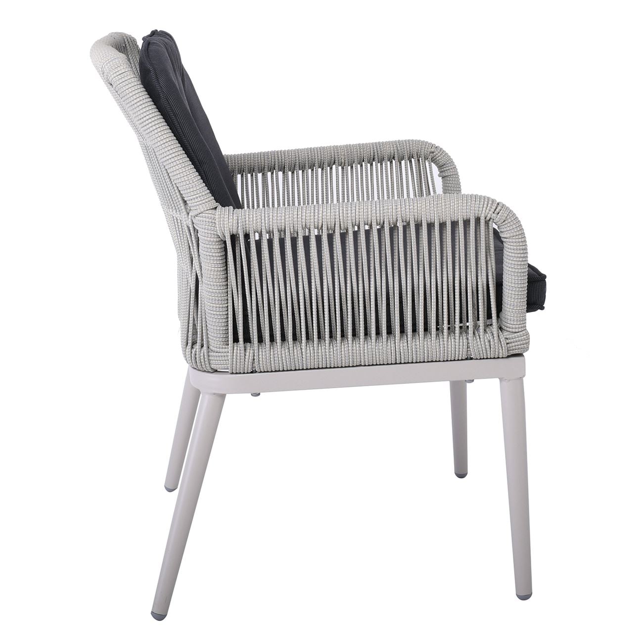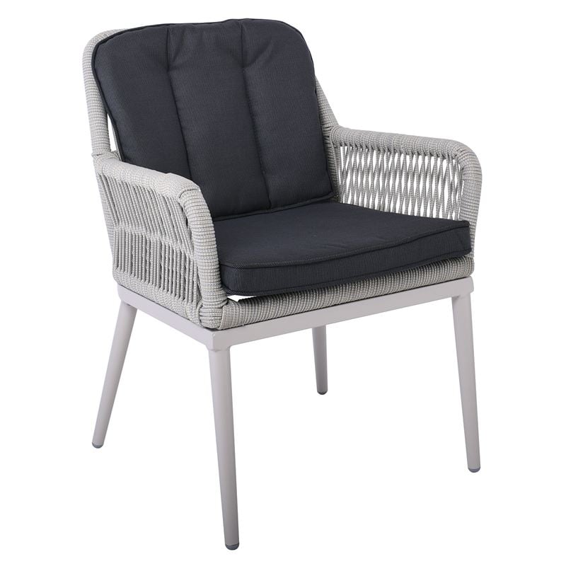 ALLEY Πολυθρόνα Τραπεζαρίας Κήπου ALU, Rope Grey 6mm, Μαξιλάρια Ανθρακί