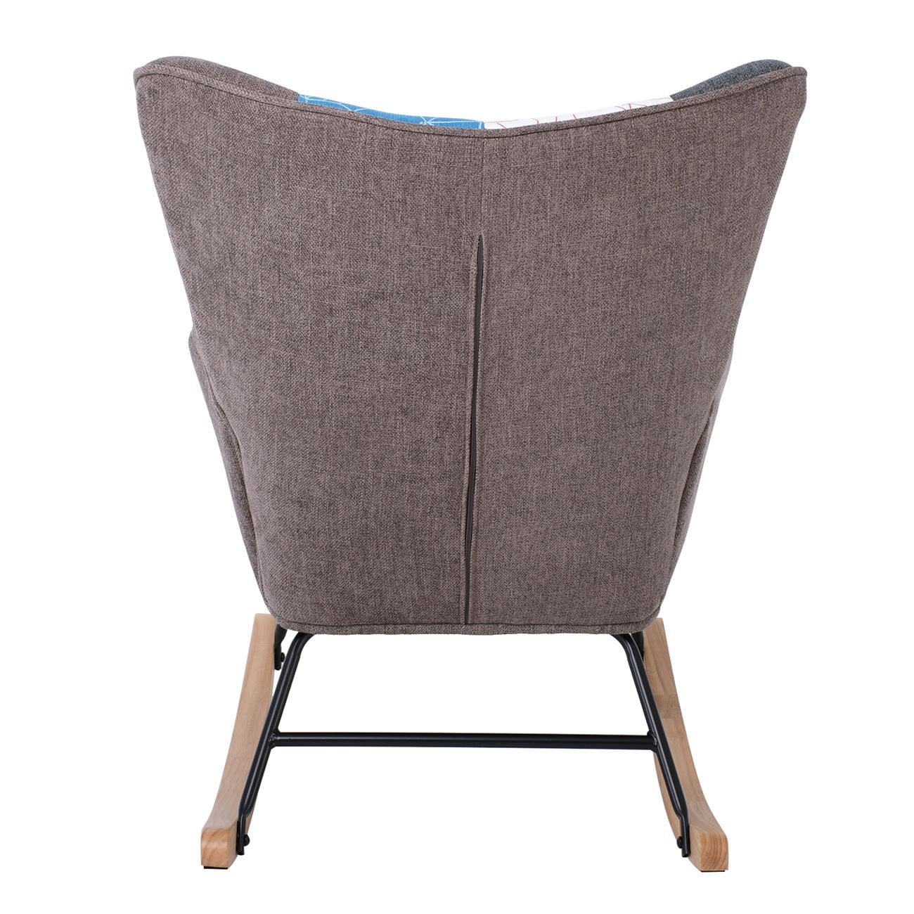 ALMA Rocking Πολυθρόνα Μπερζέρα Καθιστικού, Ύφασμα Patchwork, Βάση Μαύρο-Φυσικό
