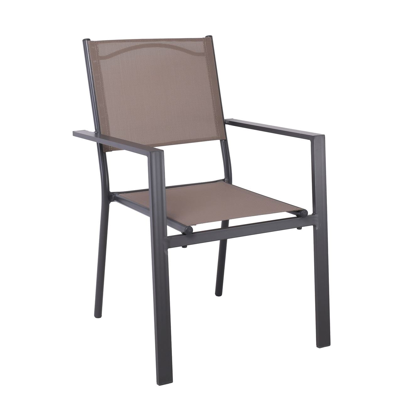AMIRAL Πολυθρόνα Dining Στοιβαζόμενη, Aλουμίνιο Ανθρακί – Textilene Cappuccino